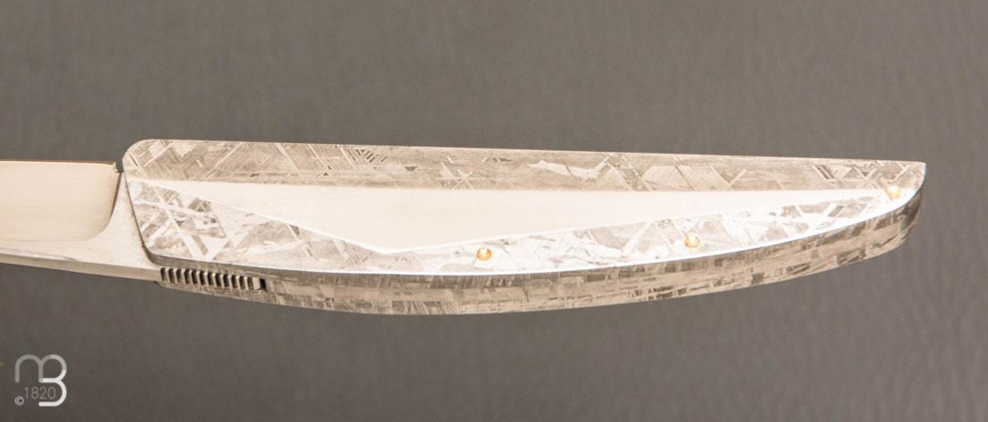Ce couteau modèle "HBP80" est pourvu de plaquettes intégralement façonnées dans la météorite Gibéon.