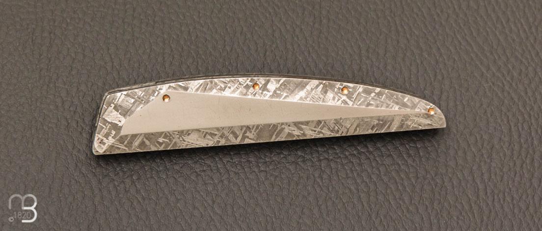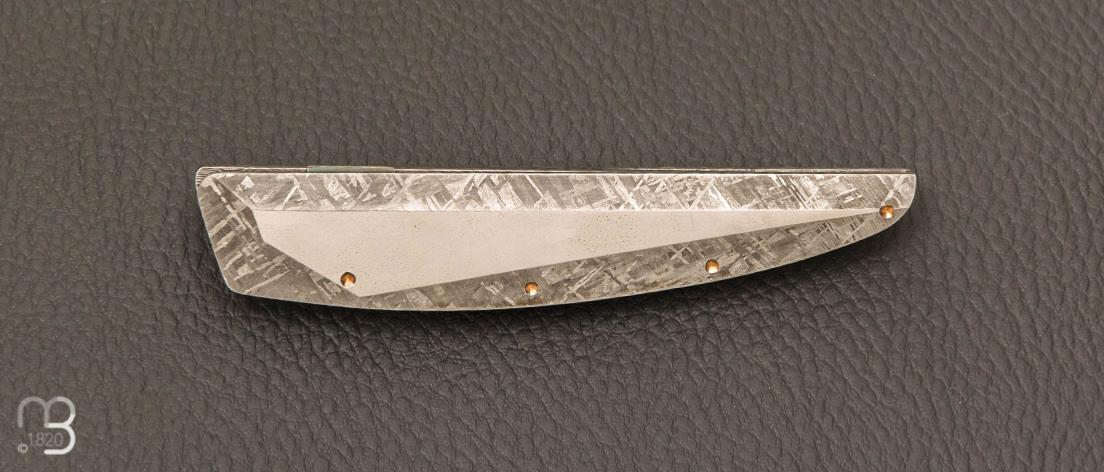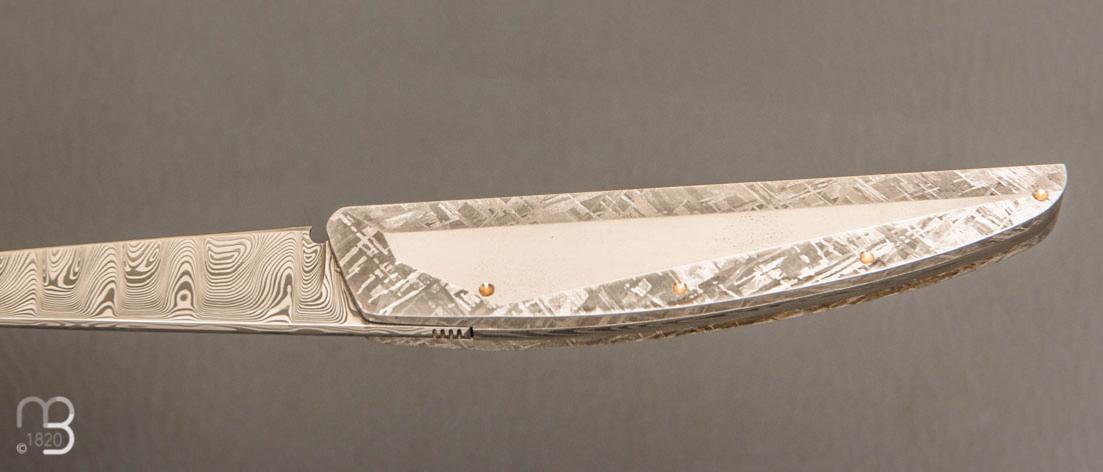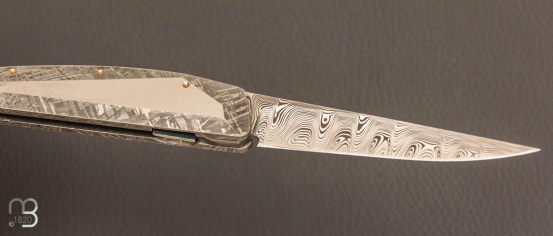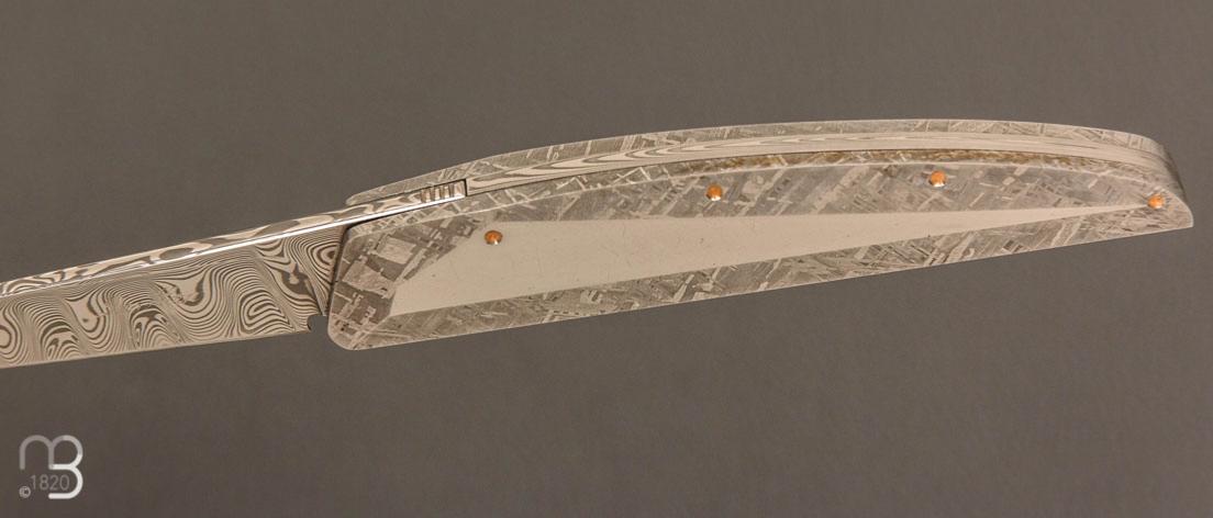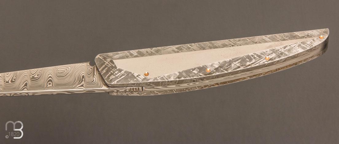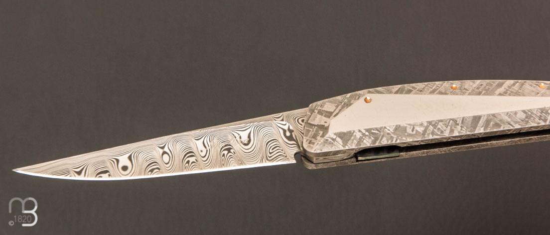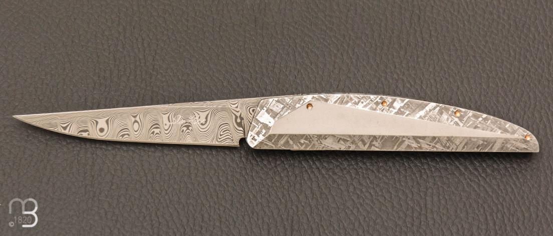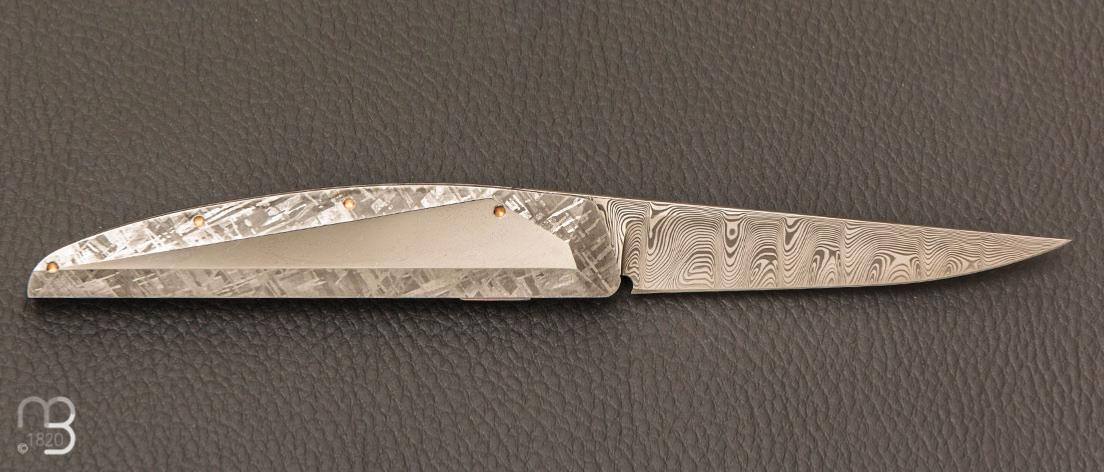 Couteau " HBP80 " de poche custom par Des Horn - Météorite Gibéon et Damasteel