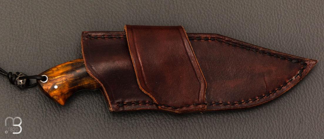Ce couteau de Mickaël Moing est livré dans un étui en cuir réalisé par l'artisan