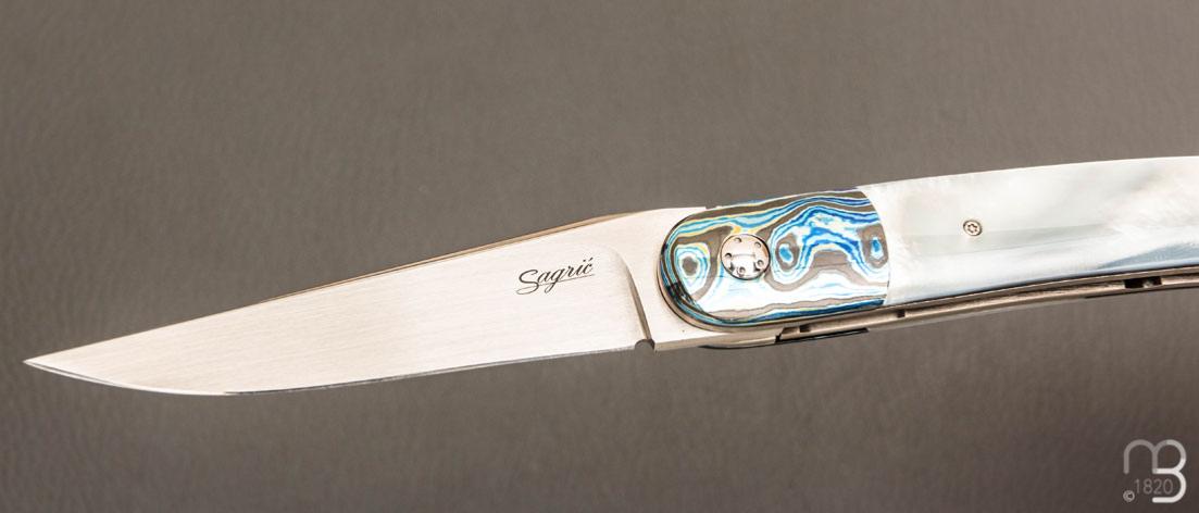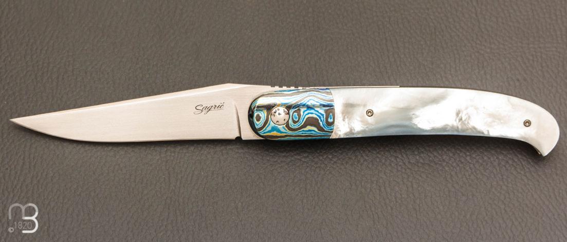 Couteau " Interprétation Laguiole " custom de Stéphane Sagric - Nacre et RWL34
