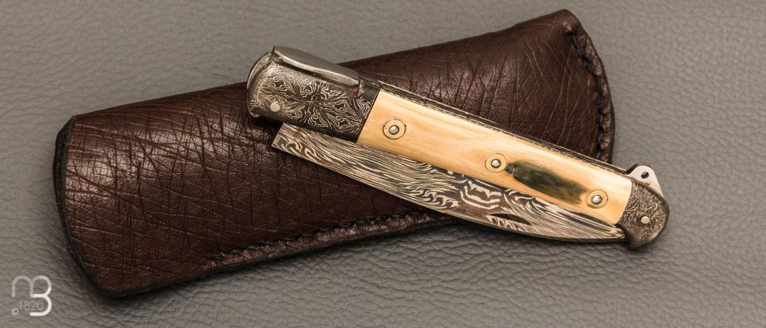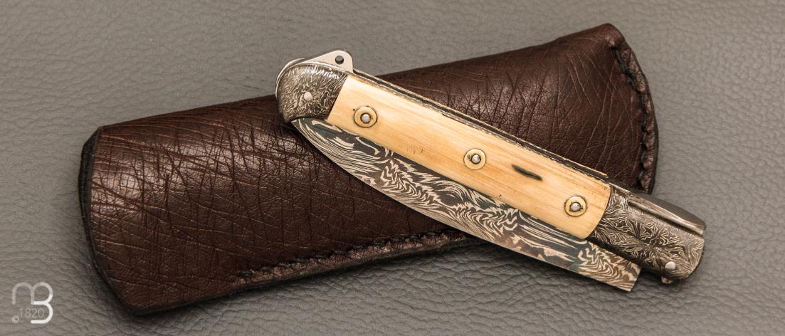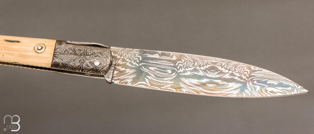 Couteau " Issoire " de Jean Pierre Veysseyre - Ivoire de mammouth et damas
