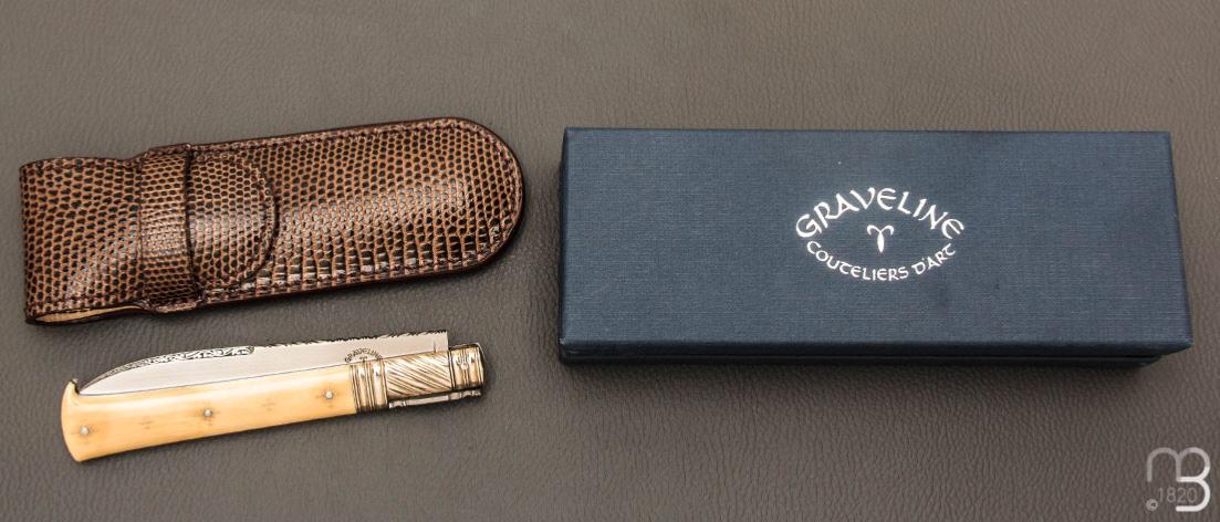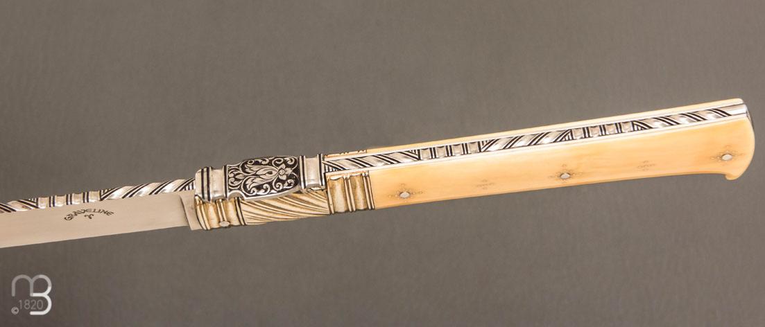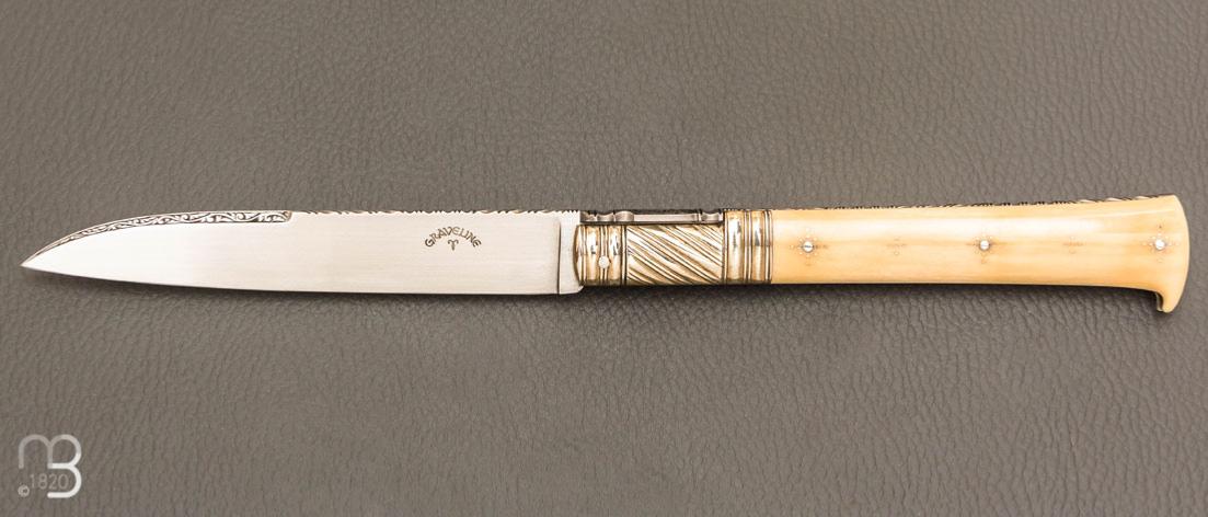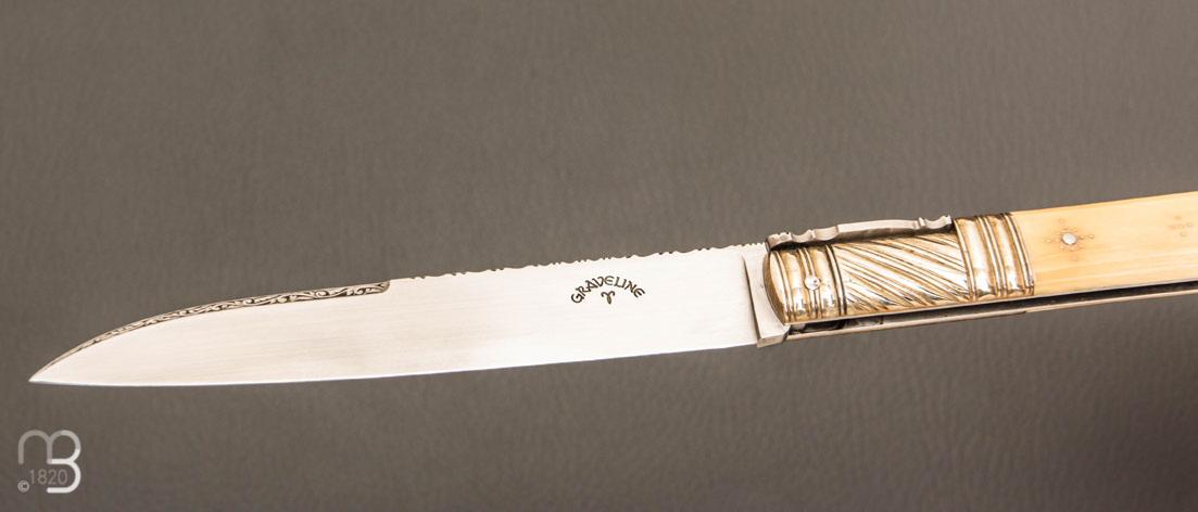 Les couteaux de collection d'Isabelle et Pascal Graveline sont aussi rares que précieux. Nous avons eu la chance d'en trouver un à vous proposer. Une merveille de simplicité, dont la lame a été gravée par Bruno Casetto (Meilleur Ouvrier de France).