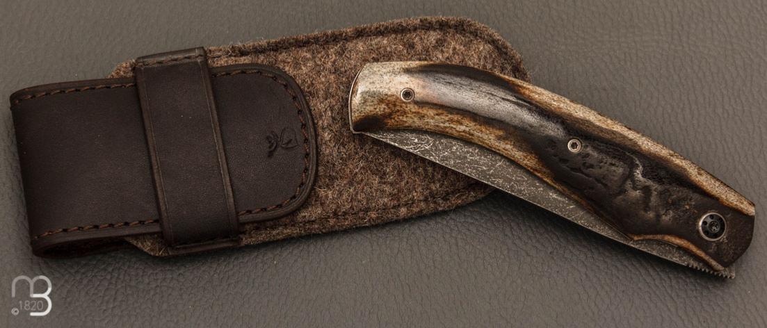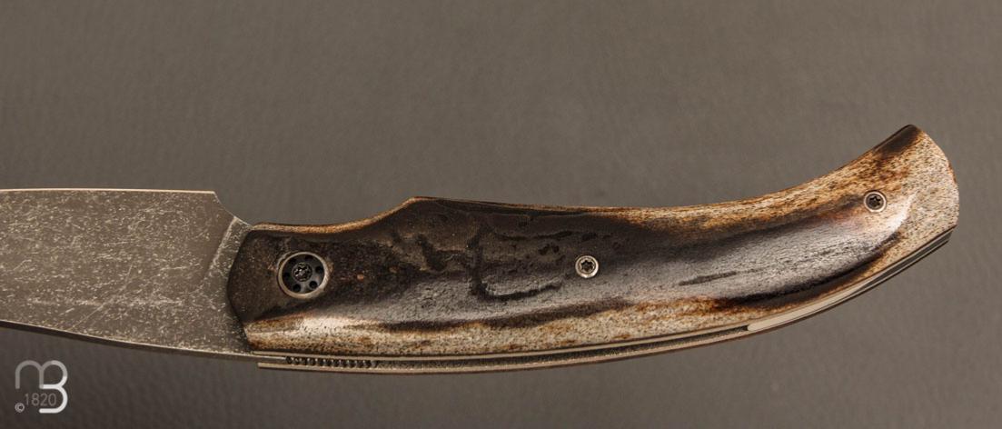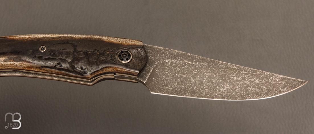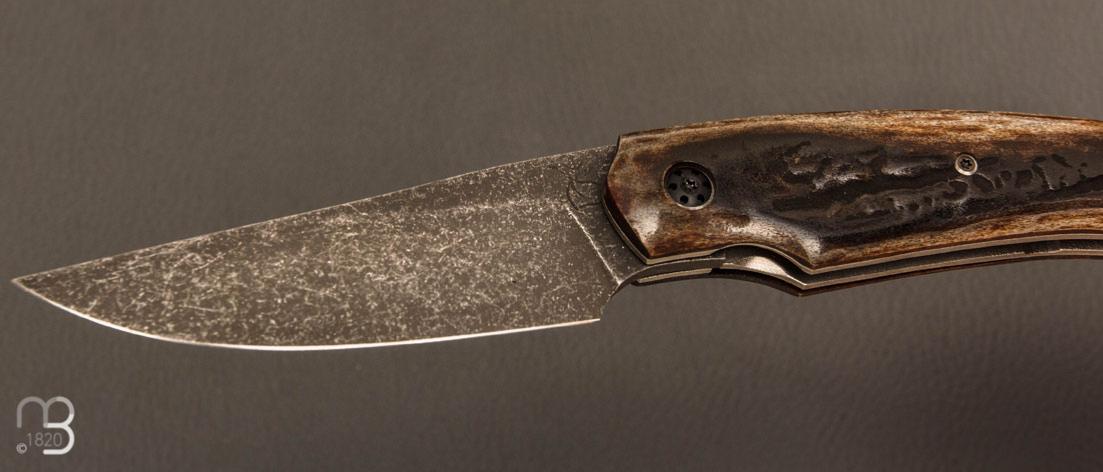 Couteau " K-Libre " custom de Michel Grini - Bois de cerf et lame en RWL34
