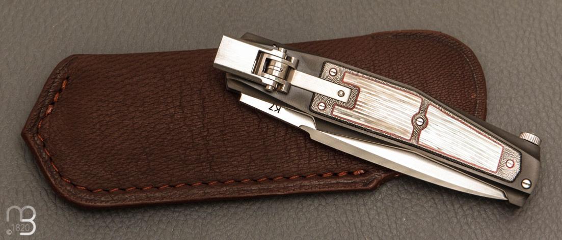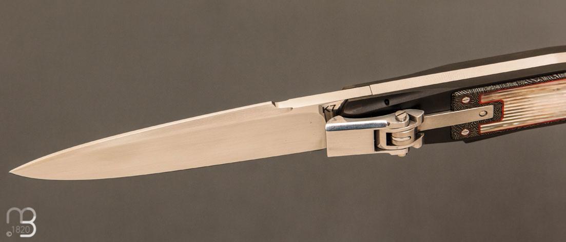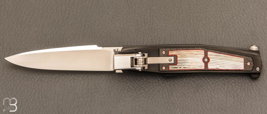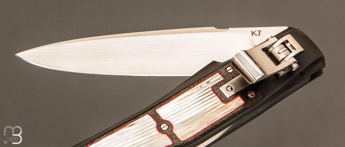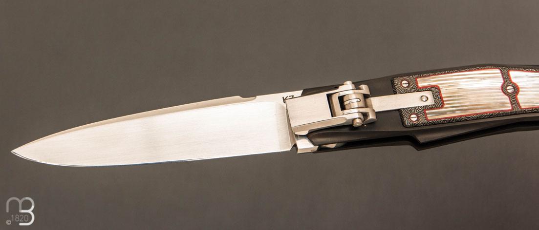 Couteau custom avec mosaïque de nacre, système d'ouverture automatique