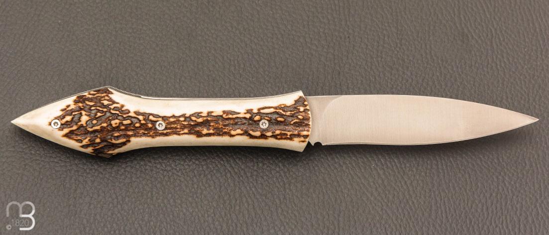 Couteau " L'Oegopsyde " fait main par Laraud Blade - Bois de cerf et 14C28