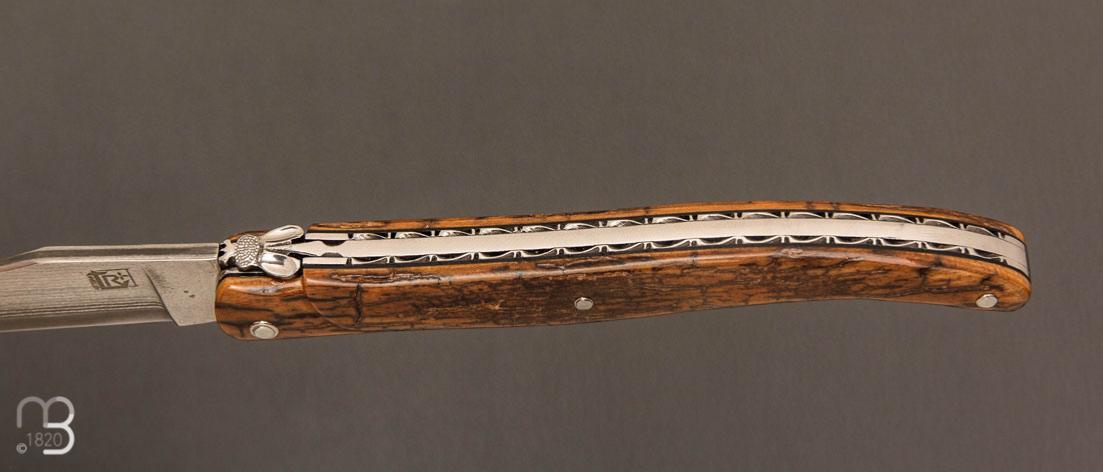 Couteau "Laguiole 12 cm " par Rozelier Fabien- Ty Coutelier - Mammouth et lame Suminagashi