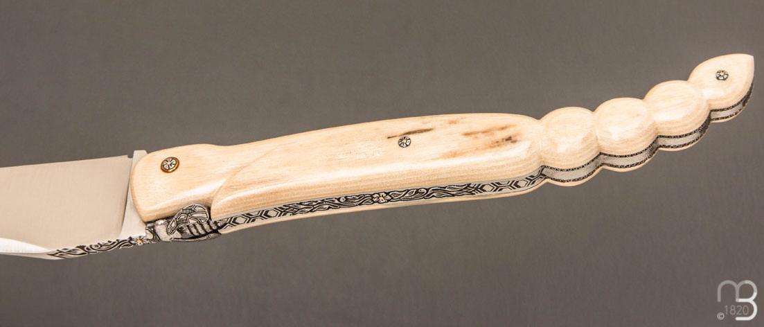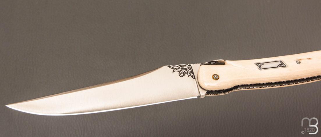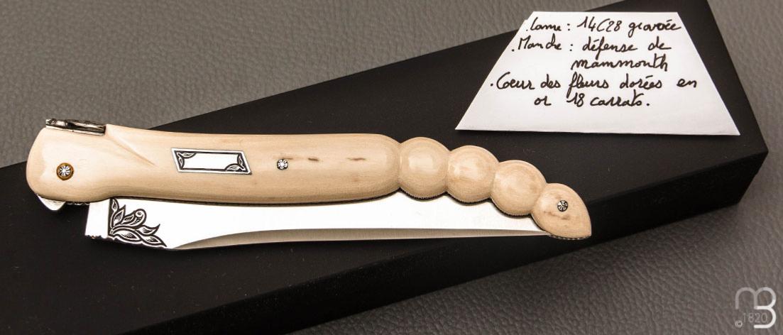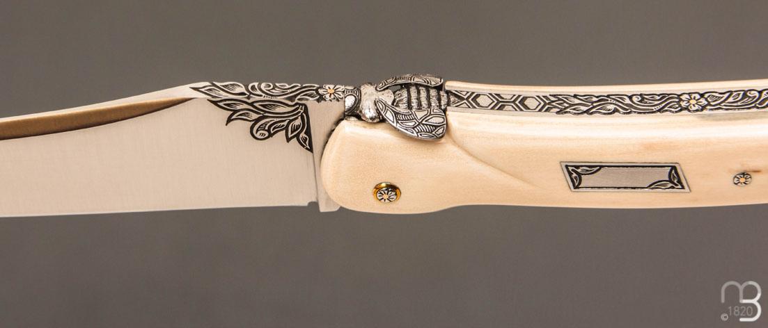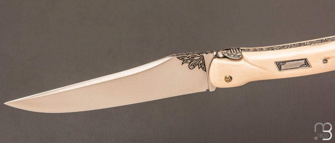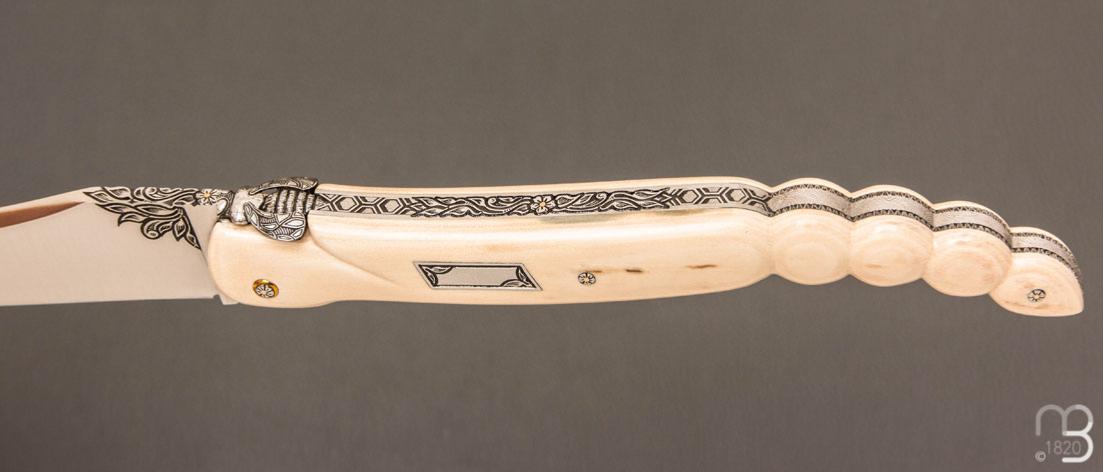 Couteau Laguiole d'exception avec un manche " Queue de scorpion " en défense de mammouth