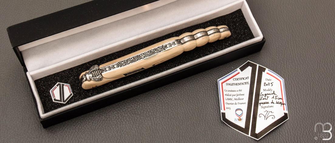 •   Couteau " Laguiole 15 CM Queue de Scorpion " de Jérôme Lamic - ivoire de mammouth