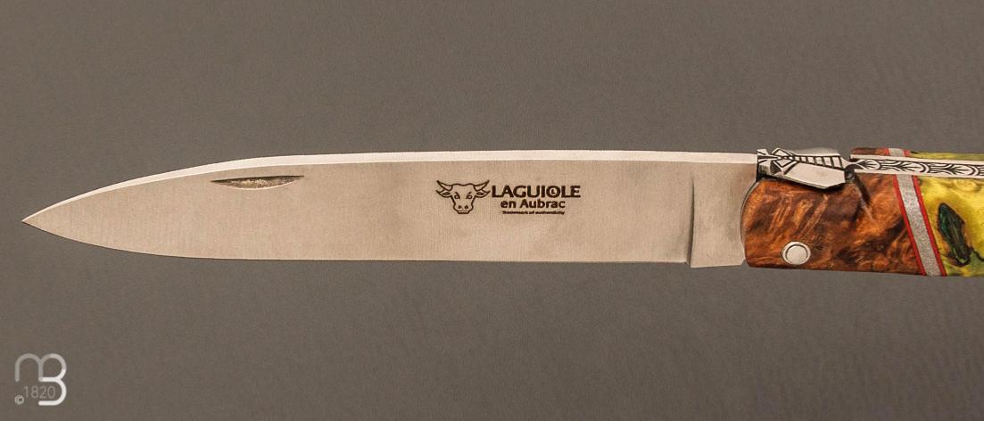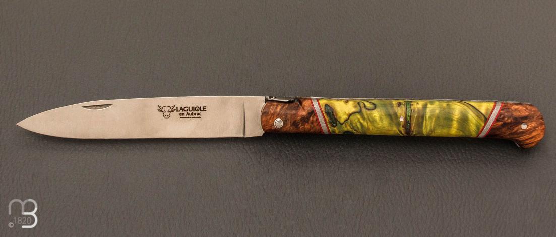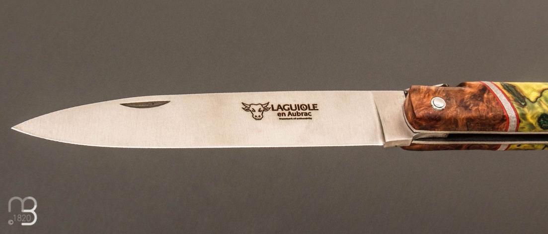 Couteau Laguiole droit 13 cm par Laguiole en Aubrac - Loupe d'Aulne et peuplier vert