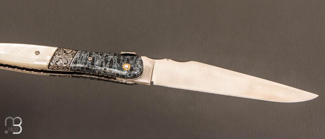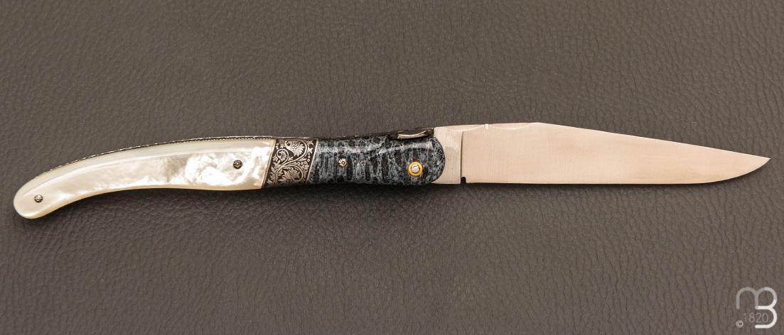 Couteau  " Laguiole pièce unique " de poche par Philippe Voissière - Corail et nacre
