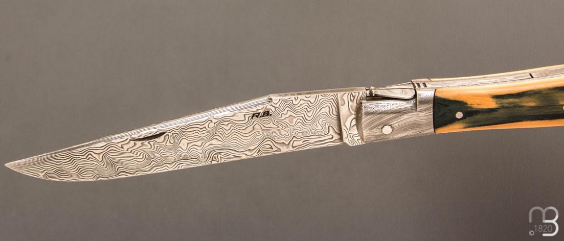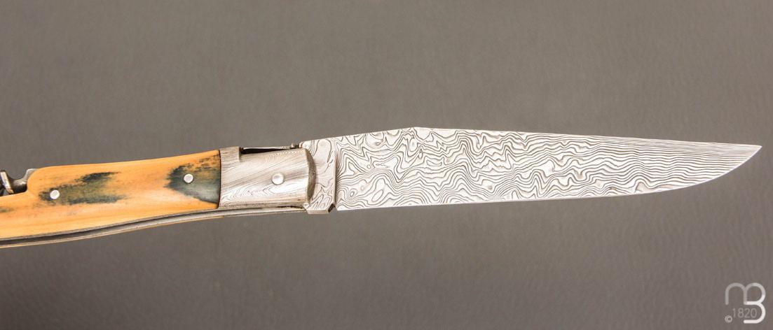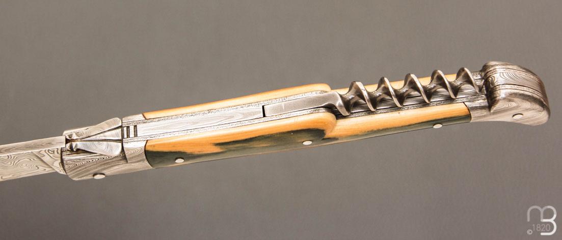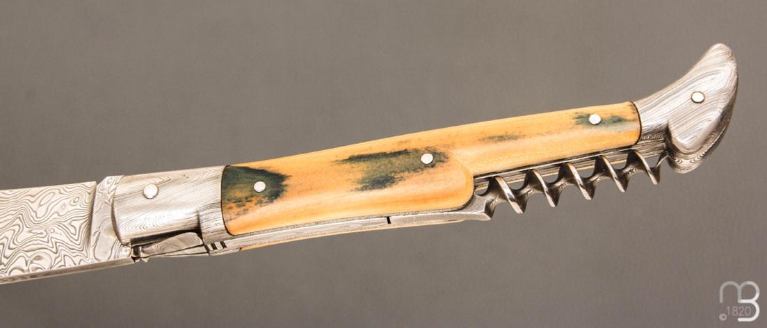 Couteau " Laguiole Tire-Bouchon " ivoire de mammouth et Damas de Robert Beillonnet
