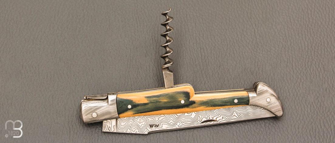 •  Couteau " Laguiole Tire-Bouchon "  ivoire de mammouth et Damas de Robert Beillonnet