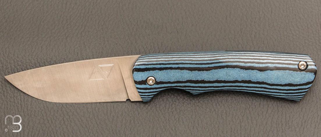 •   Couteau " Le 05 " par MTBlades Benjamin Thuillier - Paperstone bleu et lame en 14C28