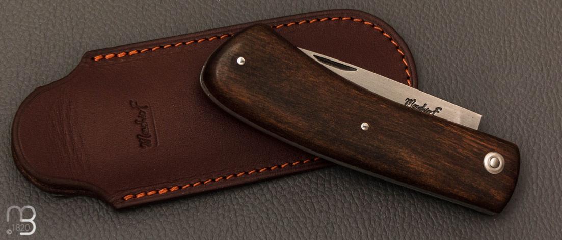 •   Couteau  " Le Dodu  " à cran plat par Frédéric Maschio - Ébène marbré et acier 80CrV2