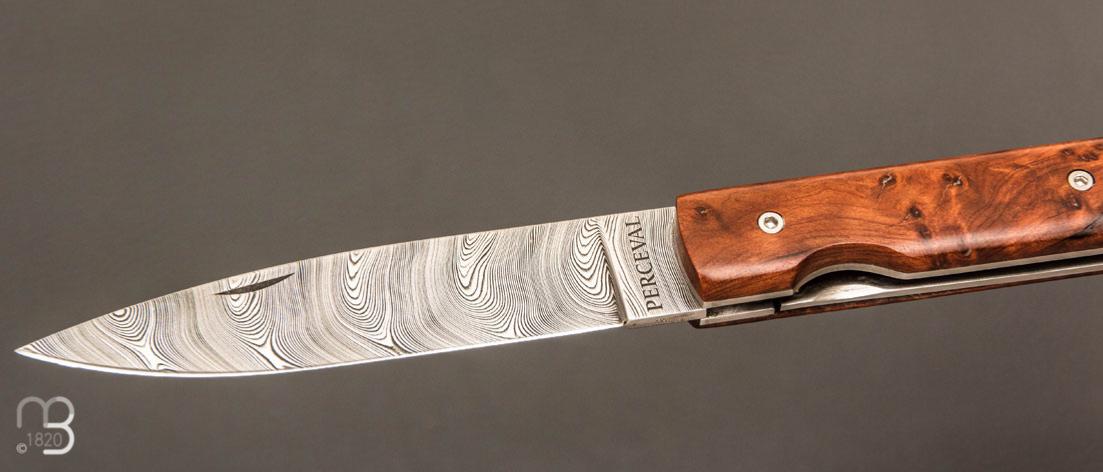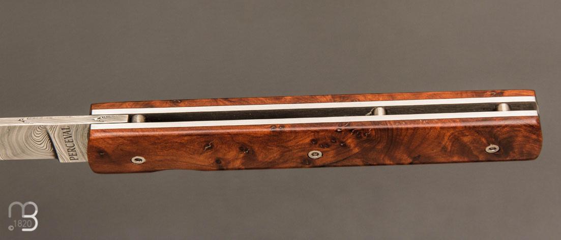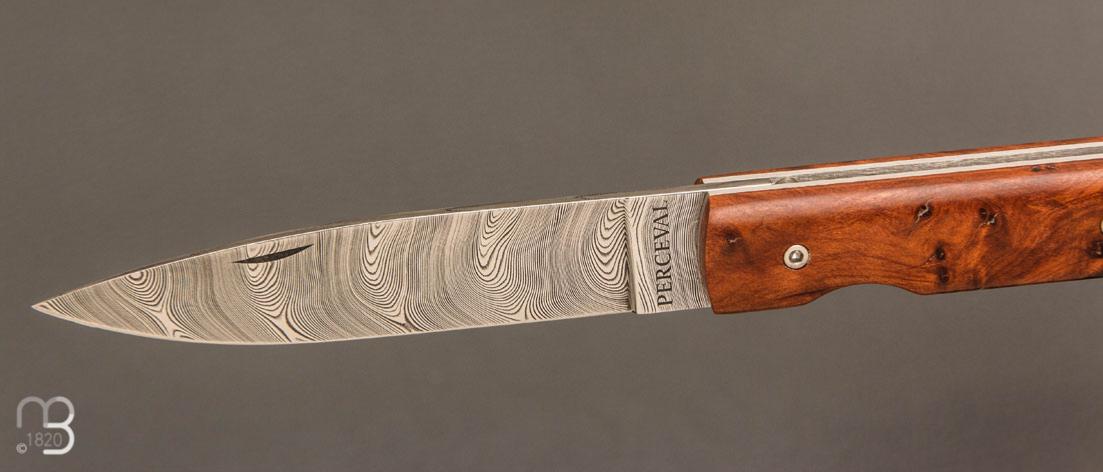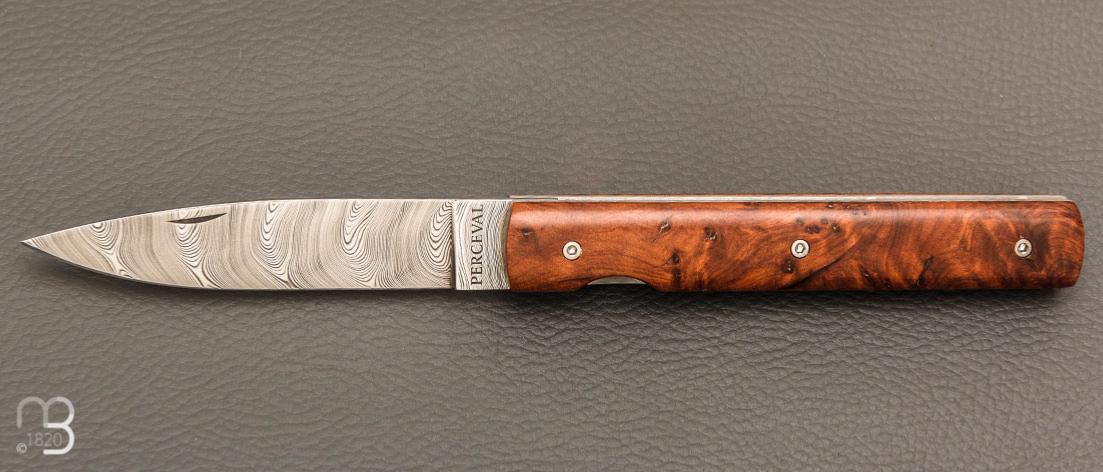 Couteau " Le Français " pliant par Perceval - lame damas et Thuya