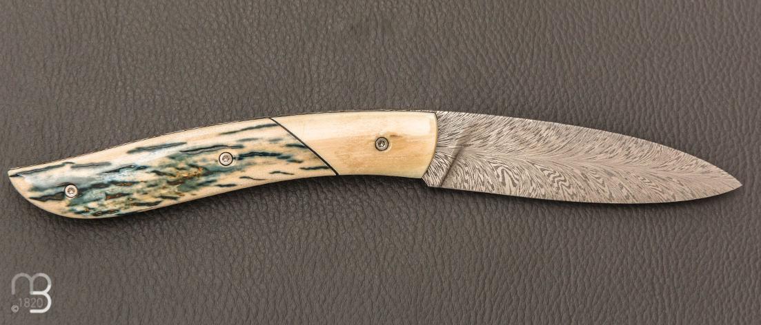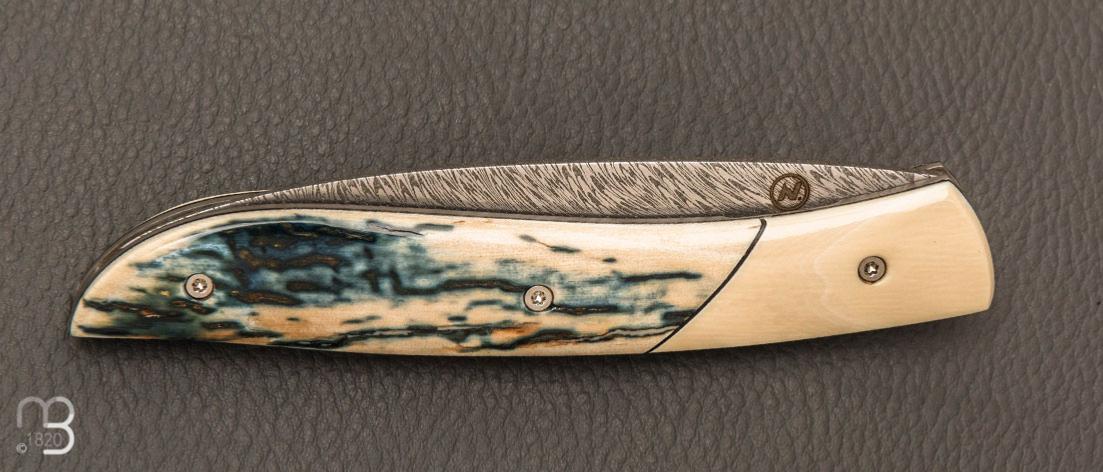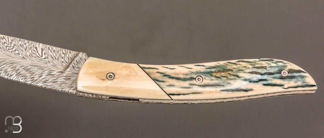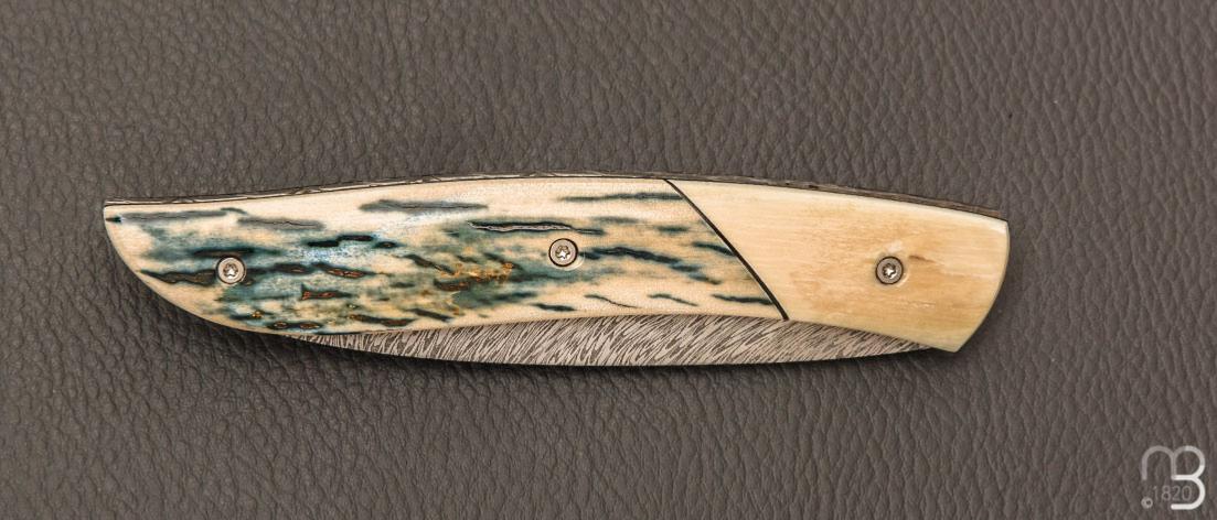 Couteau " le Névé " par Tim Bernard - Ivoire de mammouth et lame damas plume