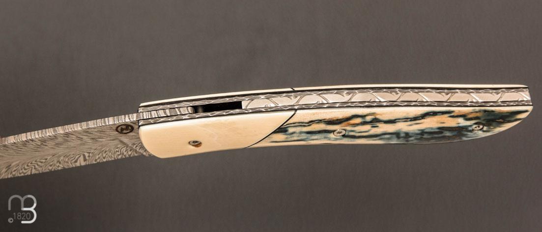 •  Couteau " le Névé " par Tim Bernard - Ivoire de mammouth et lame damas plume