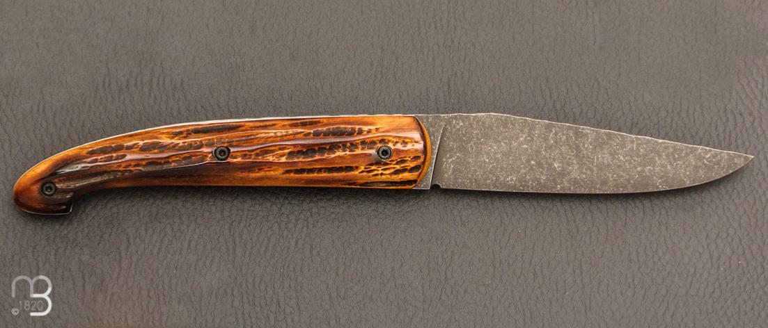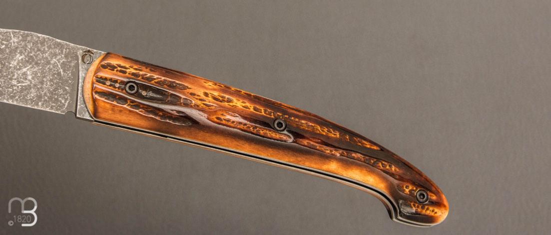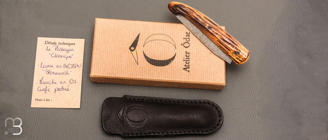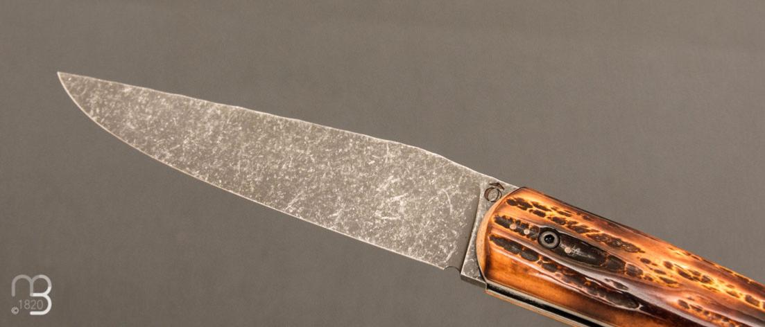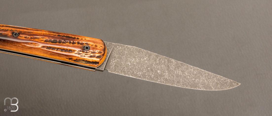 Couteau " Le Passager " de Pierre Thomas - Atelier Odae - Os cerfé et 14c28N
