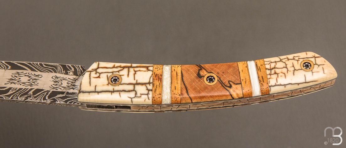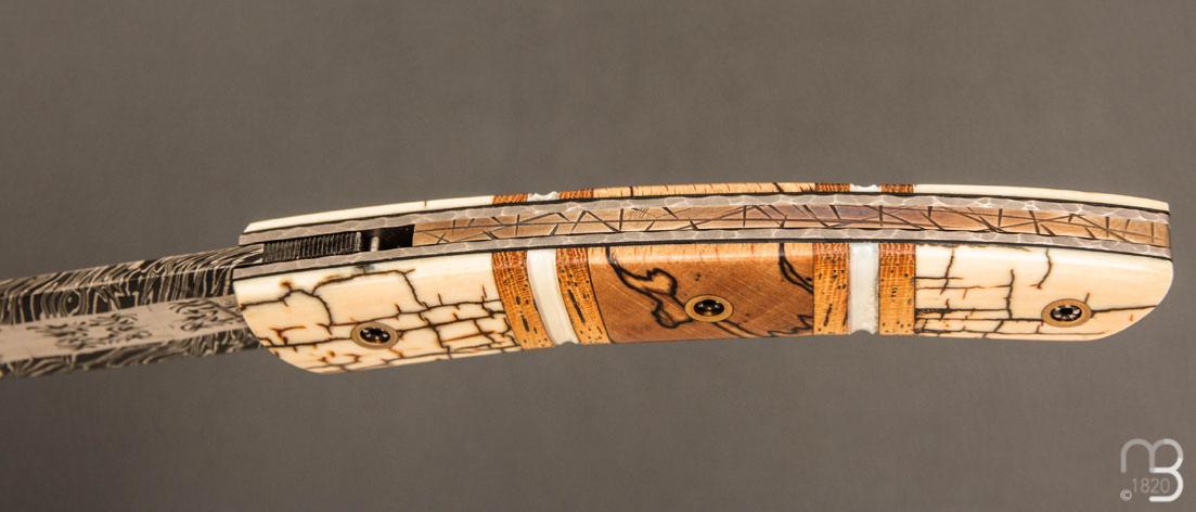 •  Couteau " le Thiers® " par Tim Bernard - Ivoire de mammouth / Morse et lame damas multi barreaux