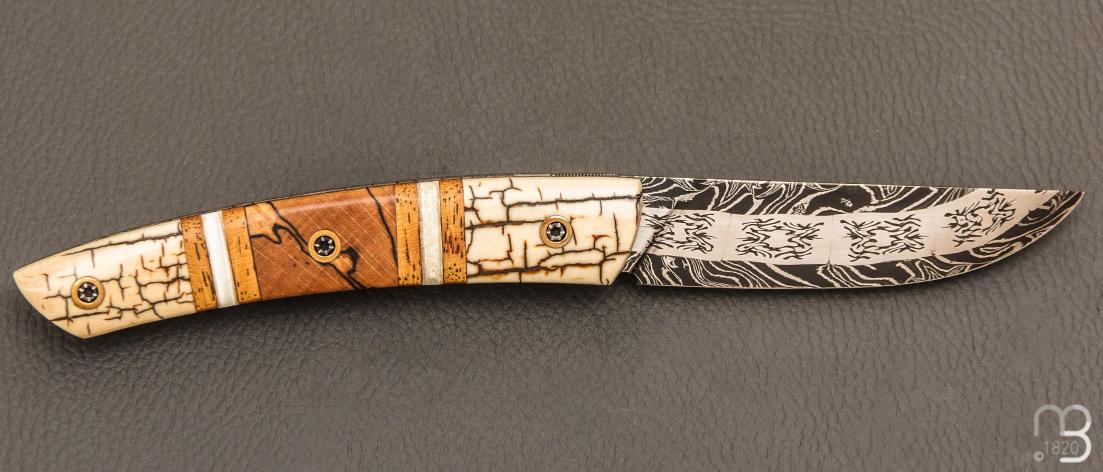 Couteau " le Thiers® " par Tim Bernard - Ivoire de mammouth / Morse et lame damas multi barreaux