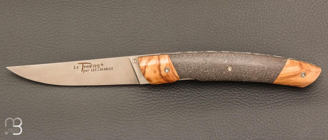 •   Couteau " Le Thiers® " pliant par l'Atelier Les 2 Diables - Lave et olivier