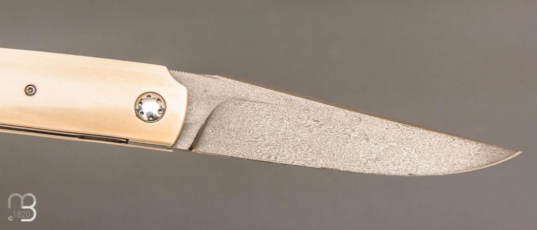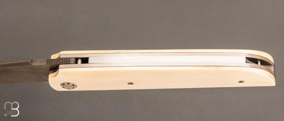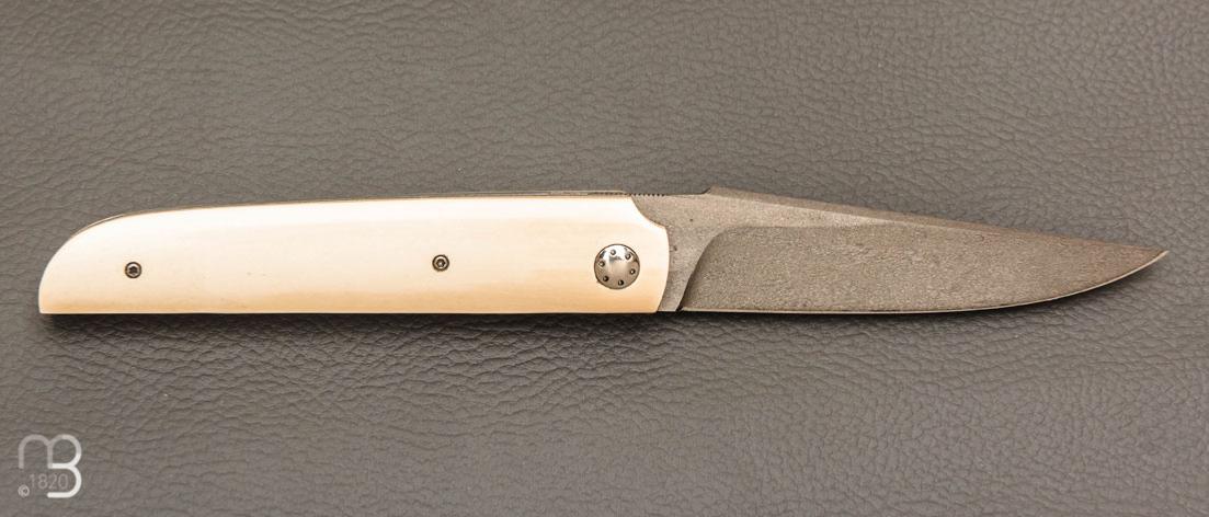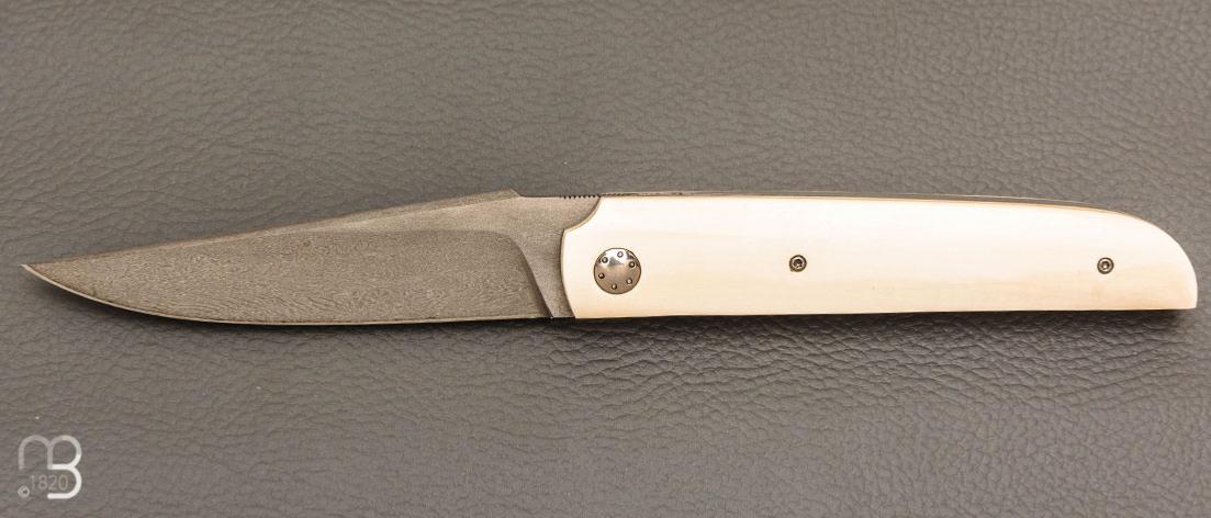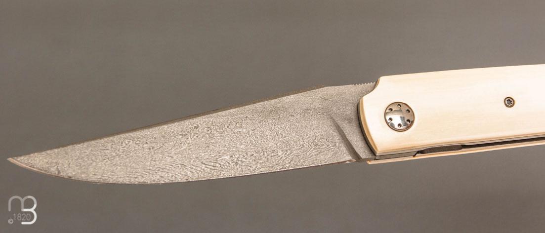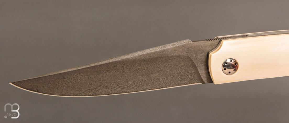 Couteau " Light " liner-lock par Thierry Chevron - Ivoire de mammouth et damas wootz