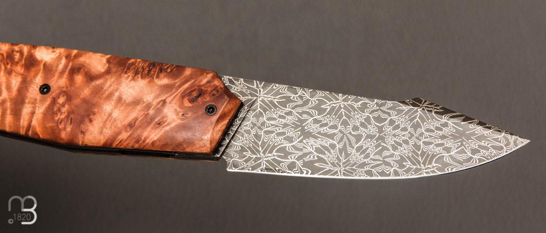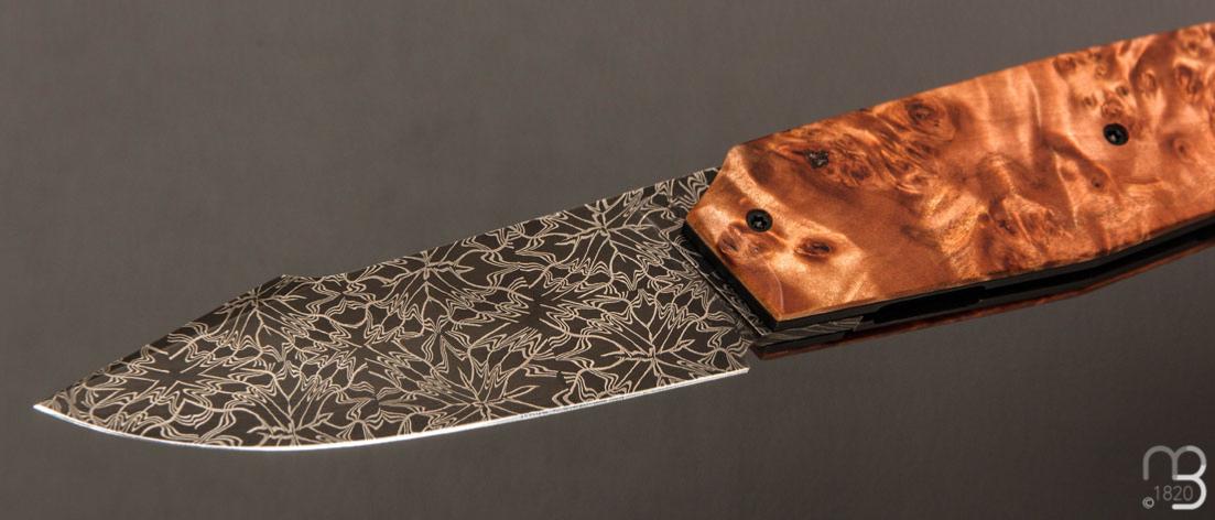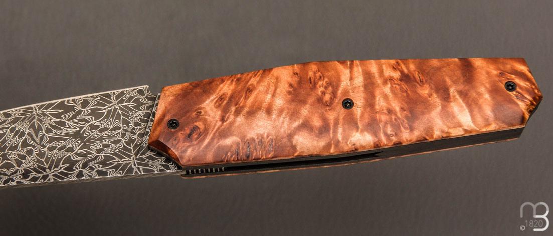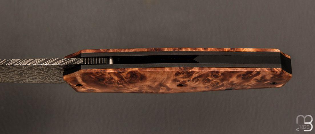 Couteau " Liner-Lock custom " par Florian Dreyer FD-Knives - Saule stabilisé et lame damas