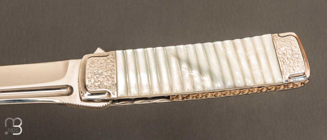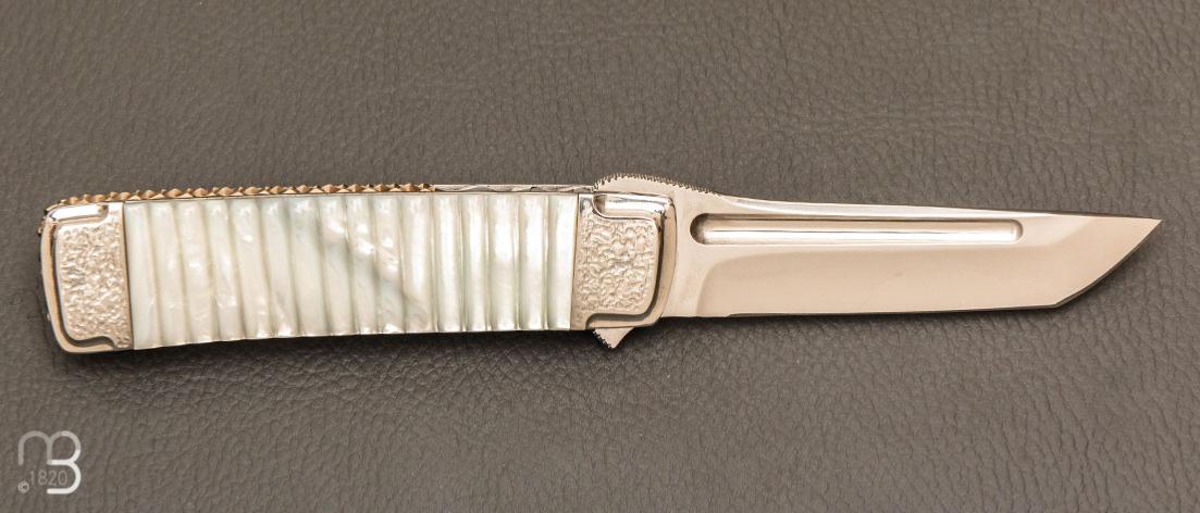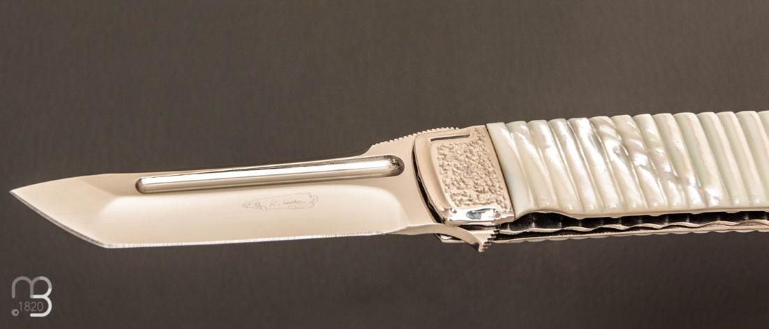 •   Couteau " Liner lock " custom par Koji Hara - Nacre blanche