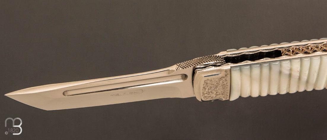 Couteau " Liner lock " custom par Koji Hara - Nacre blanche