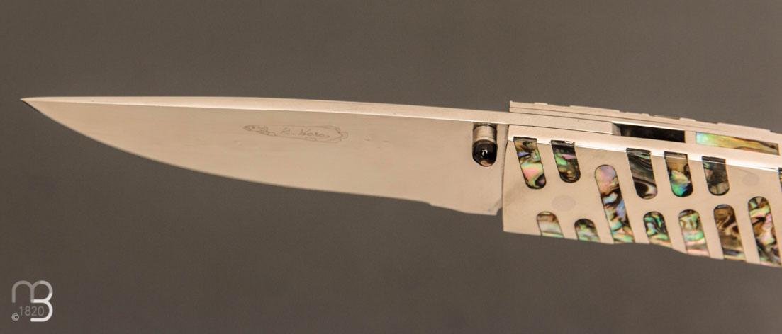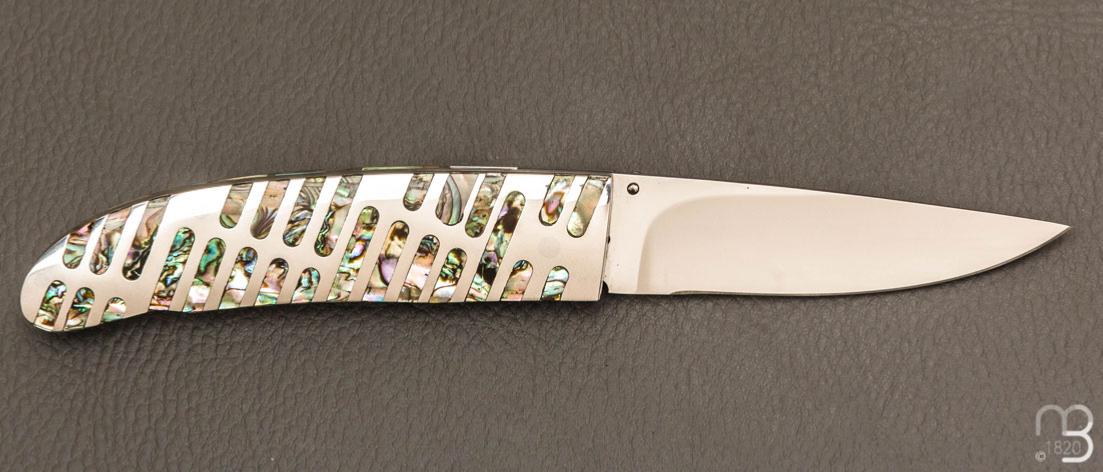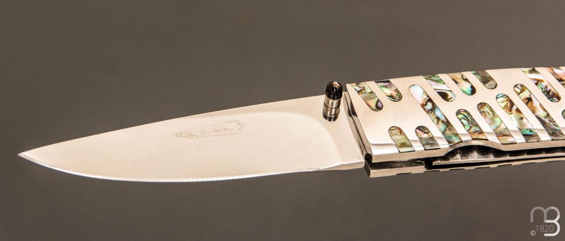 •   Couteau " Linerlock " custom par Koji Hara - Abalone et lame en Cowry-Y