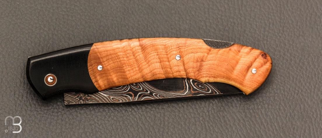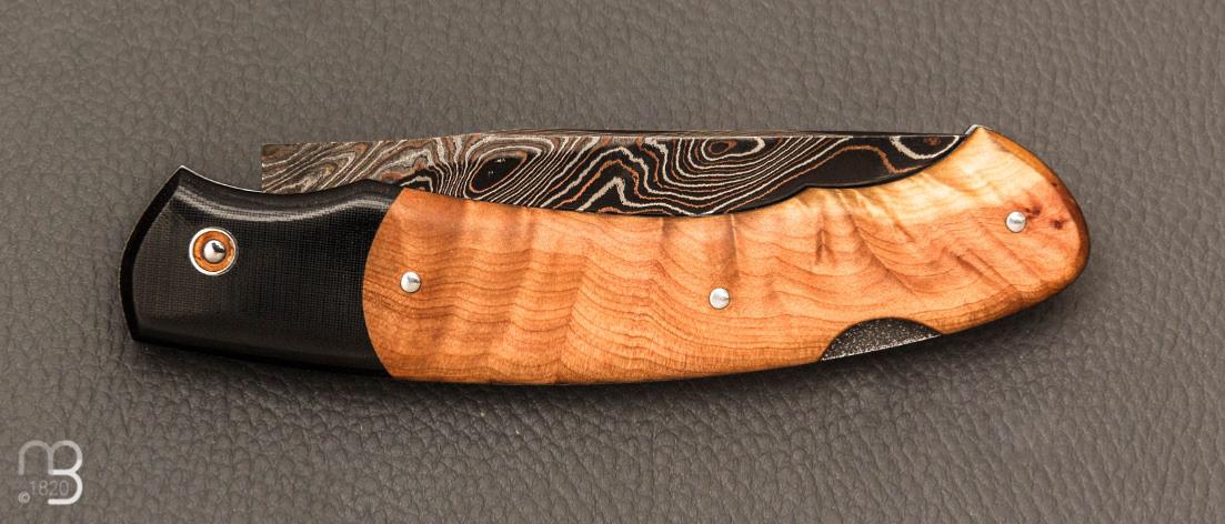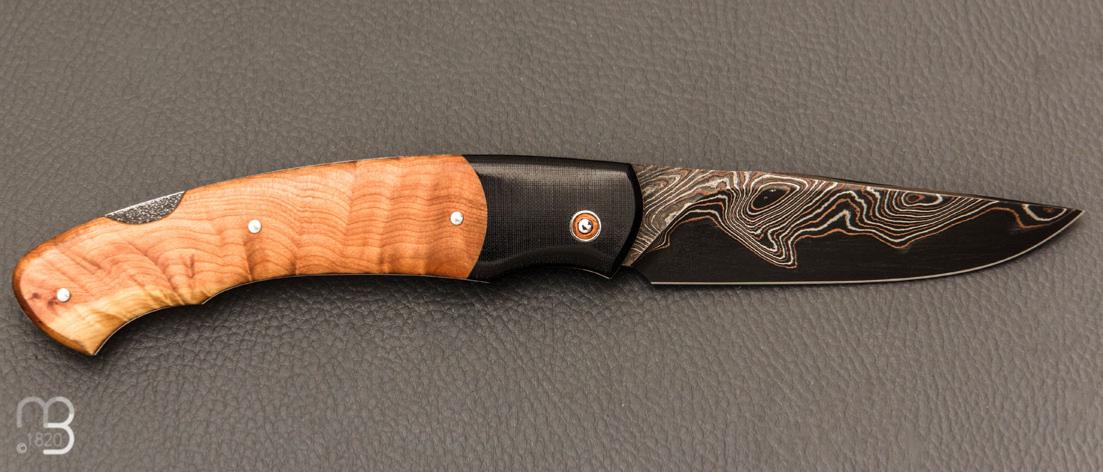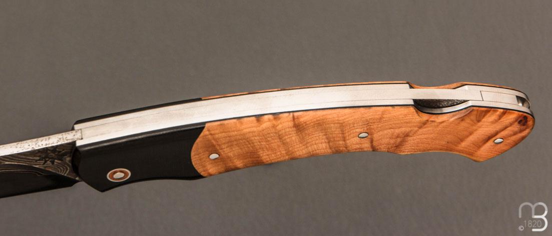 •  Couteau " lock-back " custom par Silas Coutellerie - Genévrier et lame damas cuivre