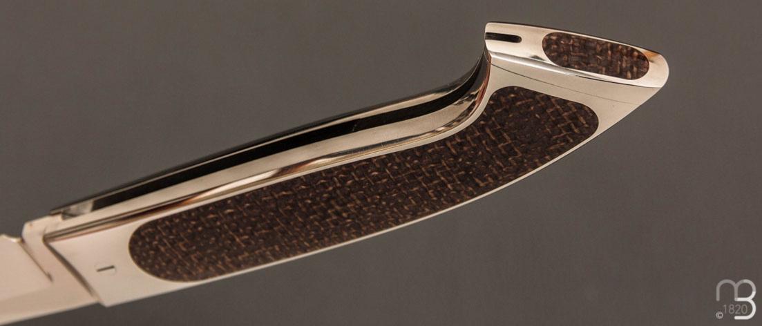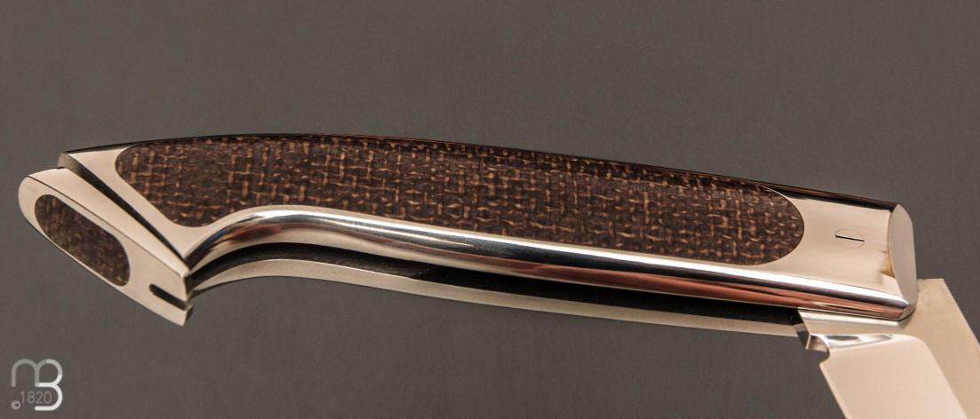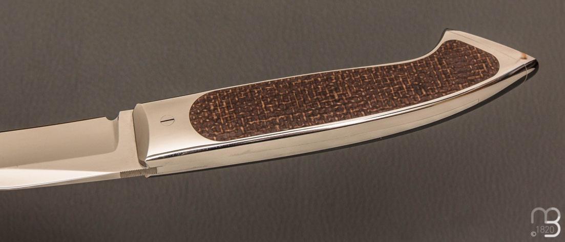 Manche en acier inoxydable 416 avec inserts "interframe" en micarta toile de jute.