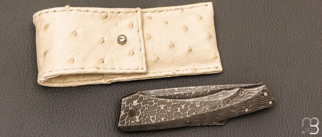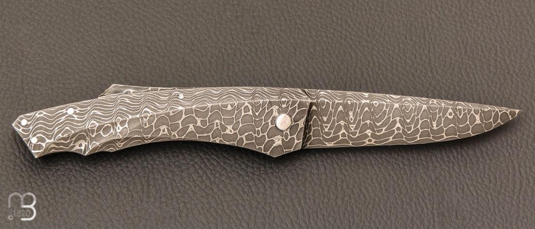 Couteau de collection  pompe arrière par Alain & Joris Chomilier intégralement en damas carbone de Vegas Forge