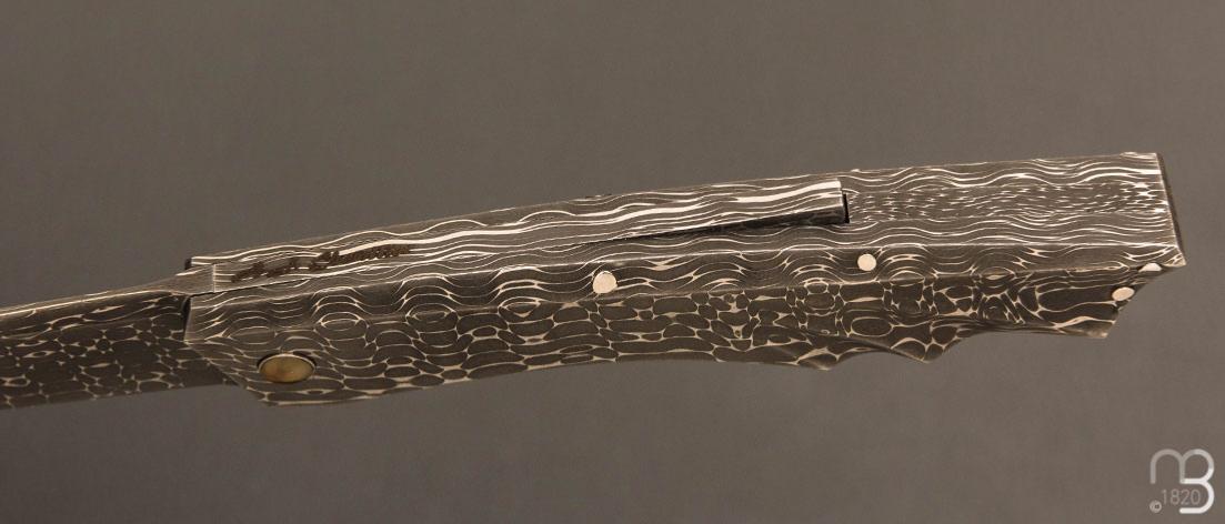 Couteau de collection  pompe arrière par Alain & Joris Chomilier intégralement en damas carbone de Vegas Forge