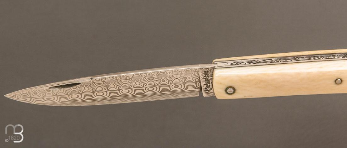 Couteau "Mandrin" de collection par Philippe Voissière - Ivoire de mammouth et lame Damasteel®