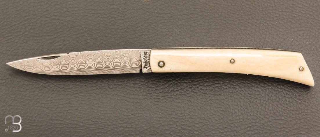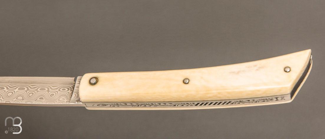 •   Couteau "Mandrin" de collection par Philippe Voissière - Ivoire de mammouth et lame Damasteel®