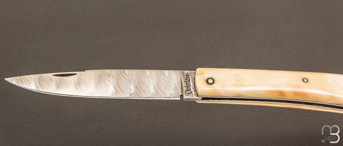 Couteau " Mandrin " de collection par Philippe Voissière - Ivoire de phacochère et lame Damasteel®