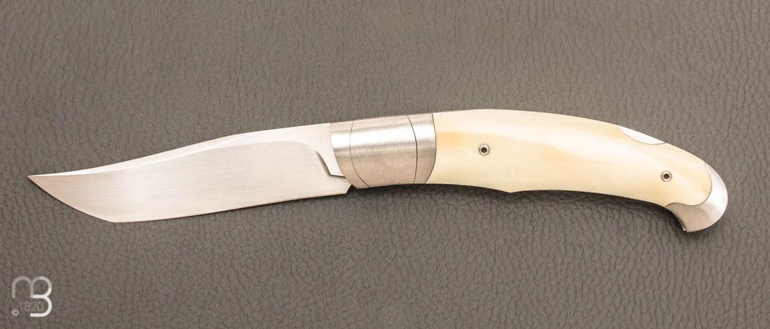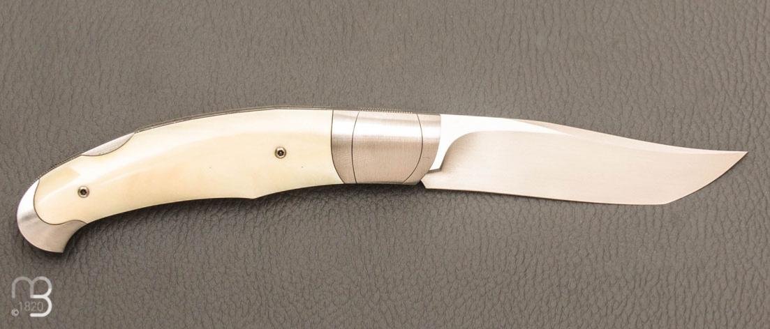 Couteau de poche " Marcos " plaquettes en ivoire de phacochère, fait main par Cyril Kalisz.