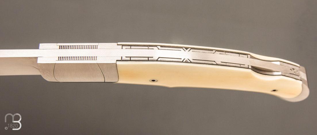 Couteau " Marcos Lock-back " pliant artisanal de Cyril Kalisz - Ivoire de phacochère et RWL-34