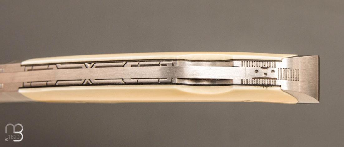 •    Couteau " Marcos Lock-back " pliant artisanal de Cyril Kalisz - Ivoire de phacochère et RWL-34