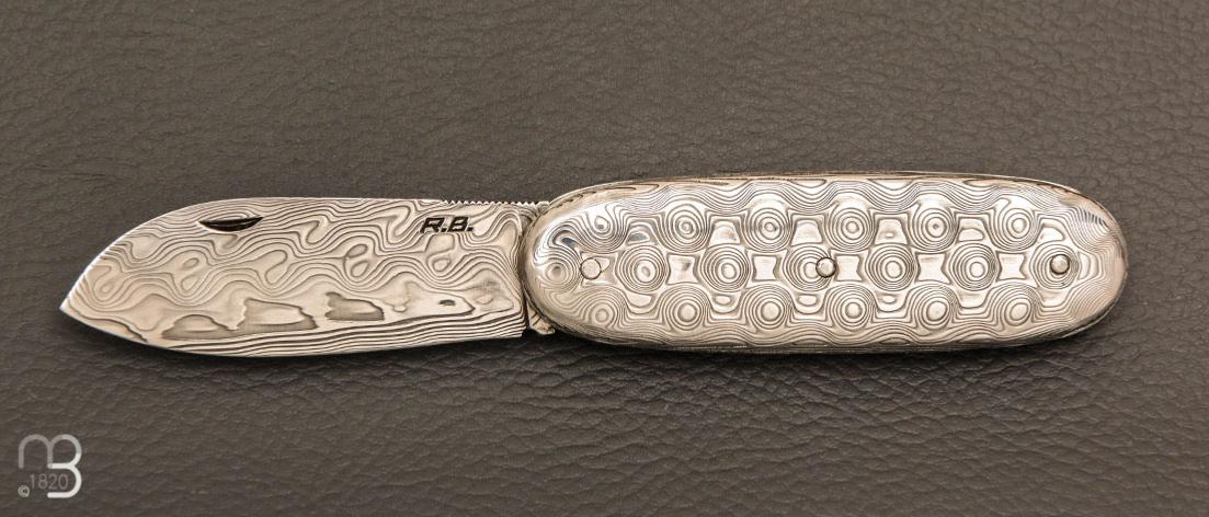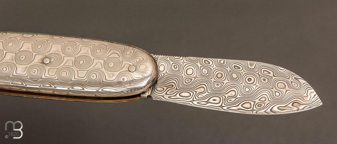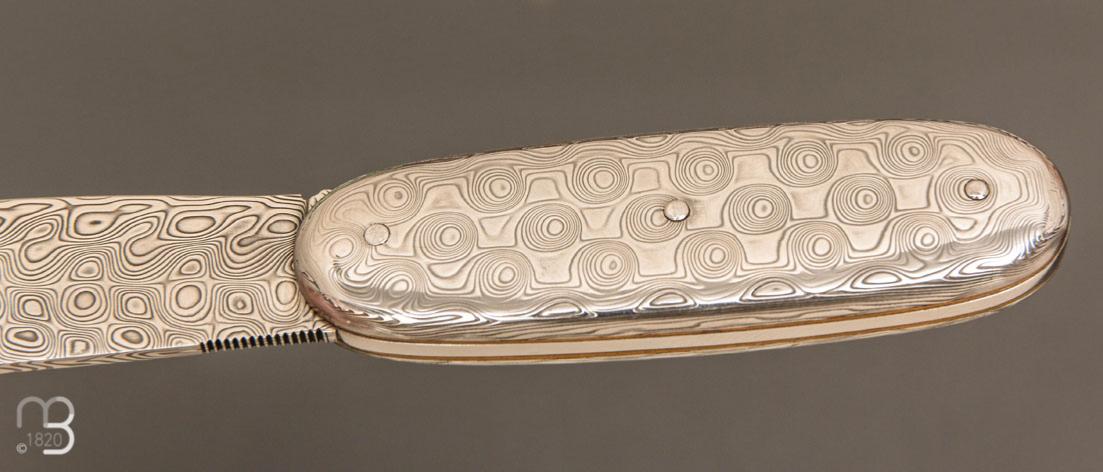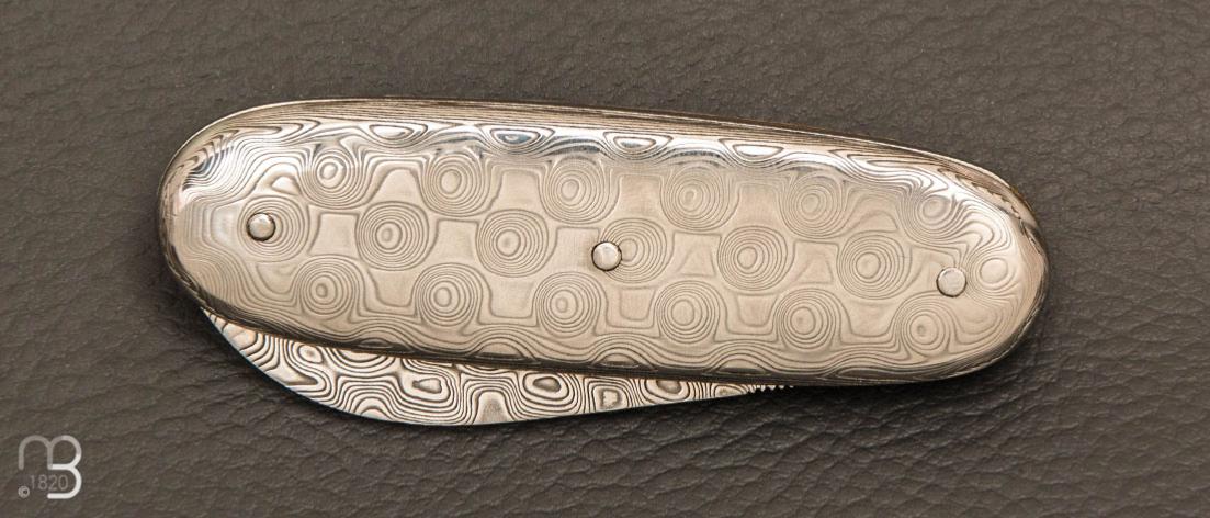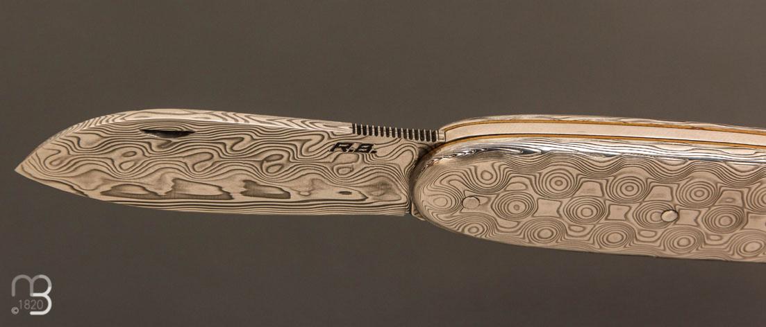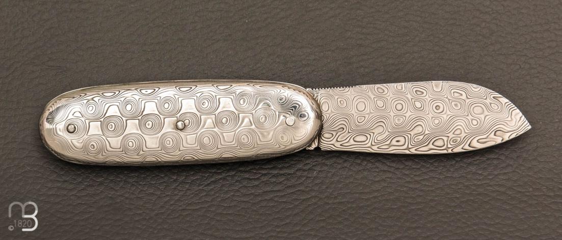 Superbe couteau de collection modèle "Navette full damas" par Robert Beillonnet, coutellier M.O.F.