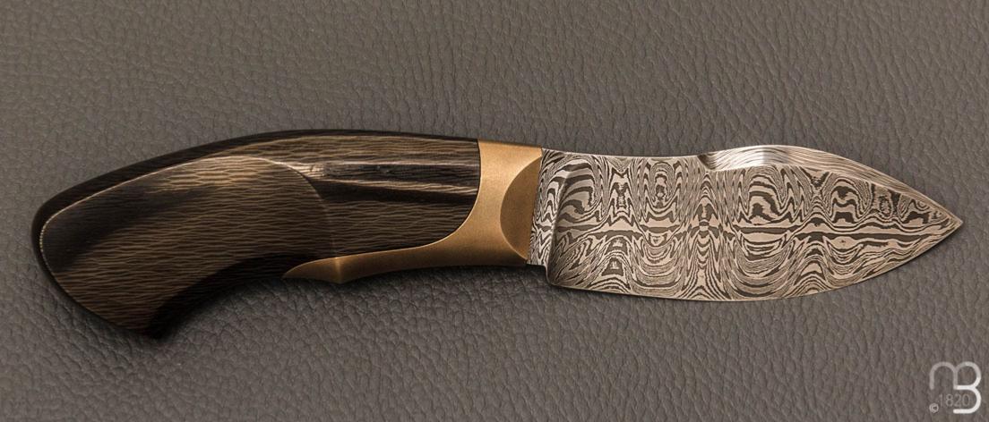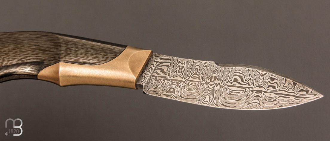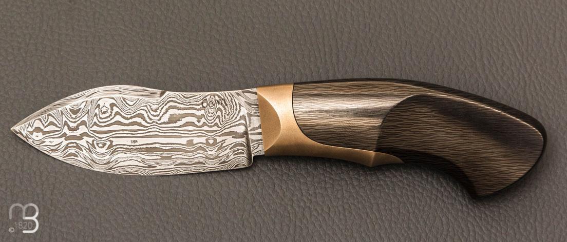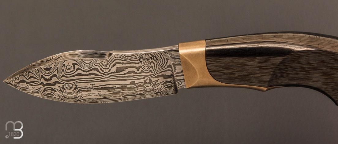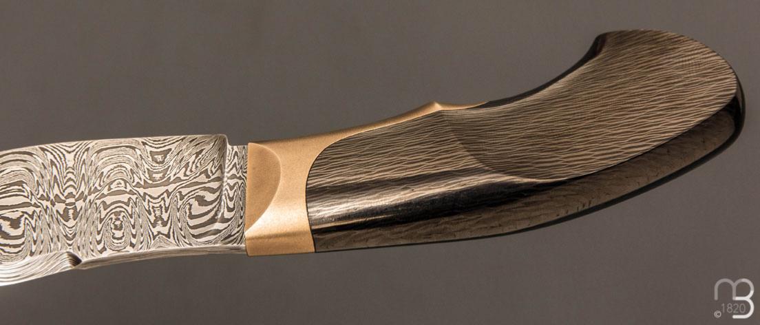 Couteau "  Nessmuk " fixe de Camille Sennegon - Fibre de carbone et lame en damas échelle W