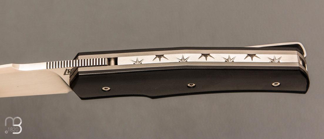 Manche composé de plaquettes en G10, platines en titane.