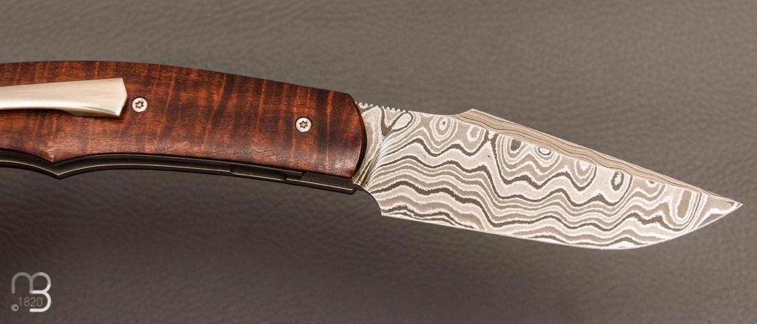 Lame en acier damas carbone de Philippe Ricard montée sur roulement à bille.