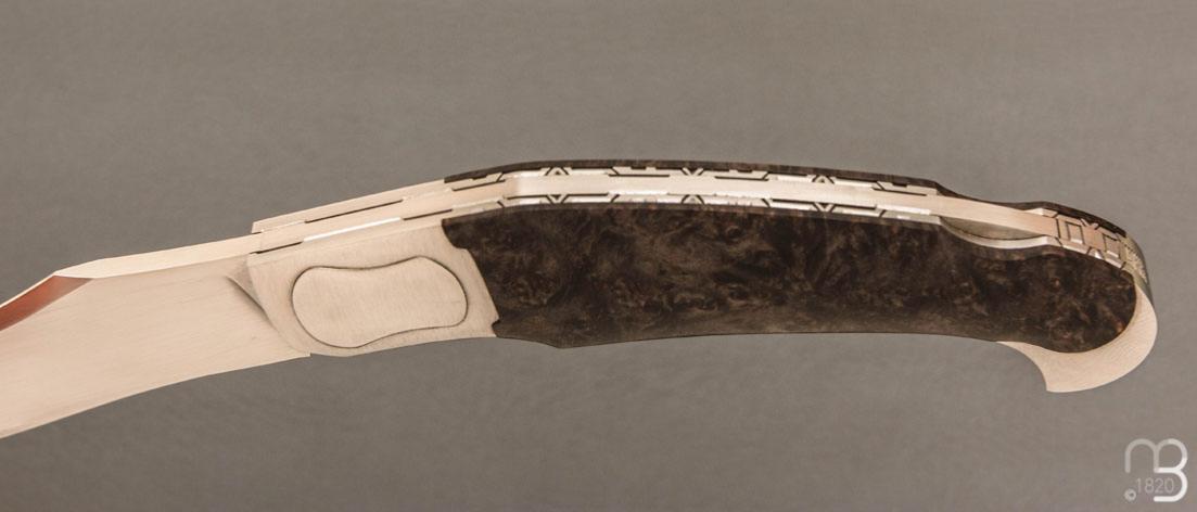 Couteau " Nuevo Western lock-back " de Cyril Kalisz - Loupe d'amboine et RWL34