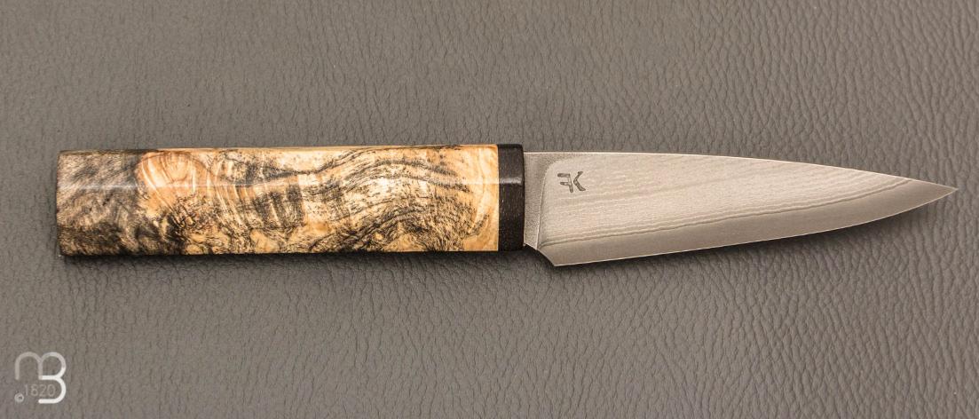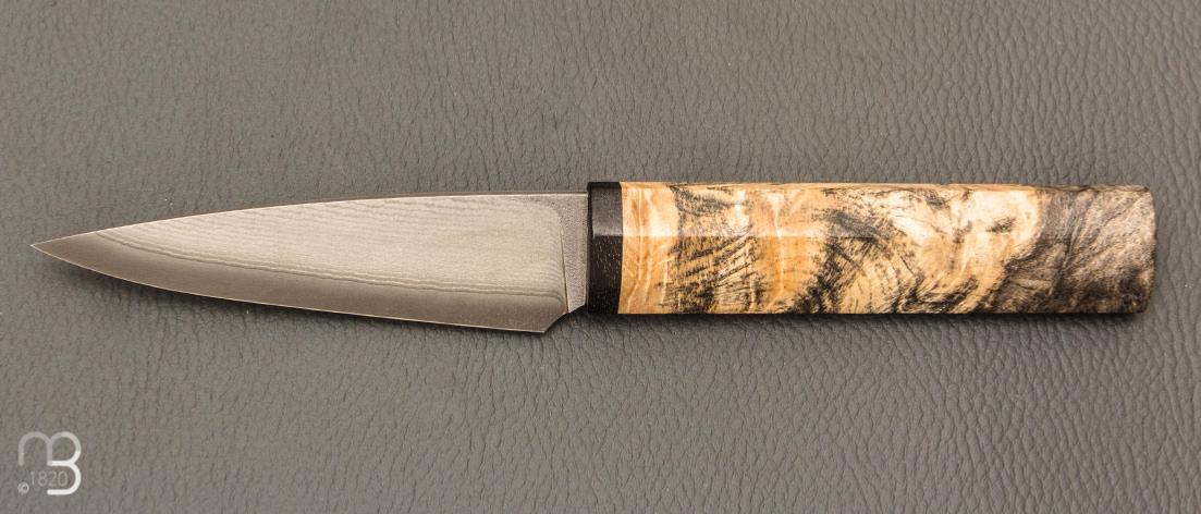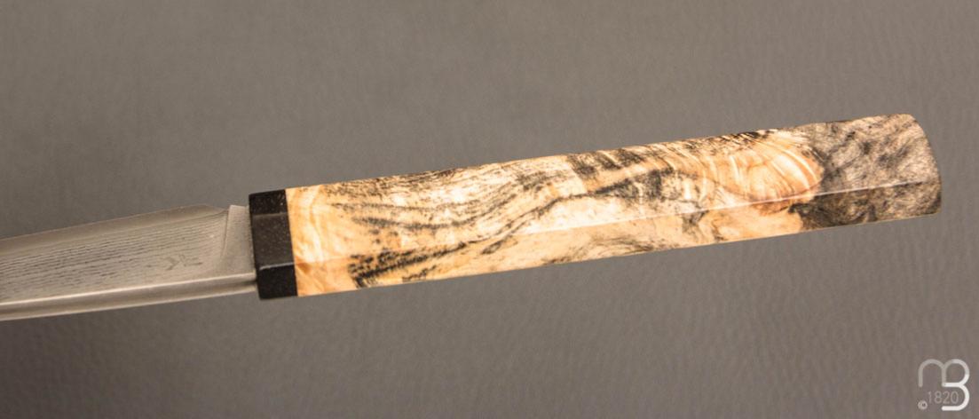Couteau " Office type Japonais " par Nicolas Kowal - Marronnier stabilisé et lame Suminagashi VG10