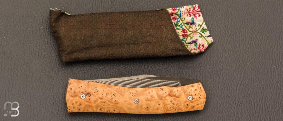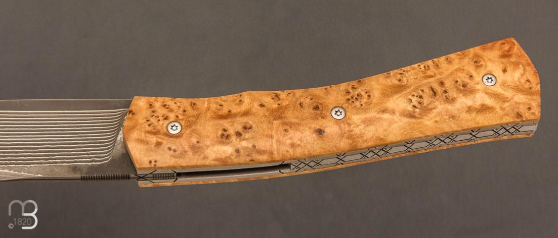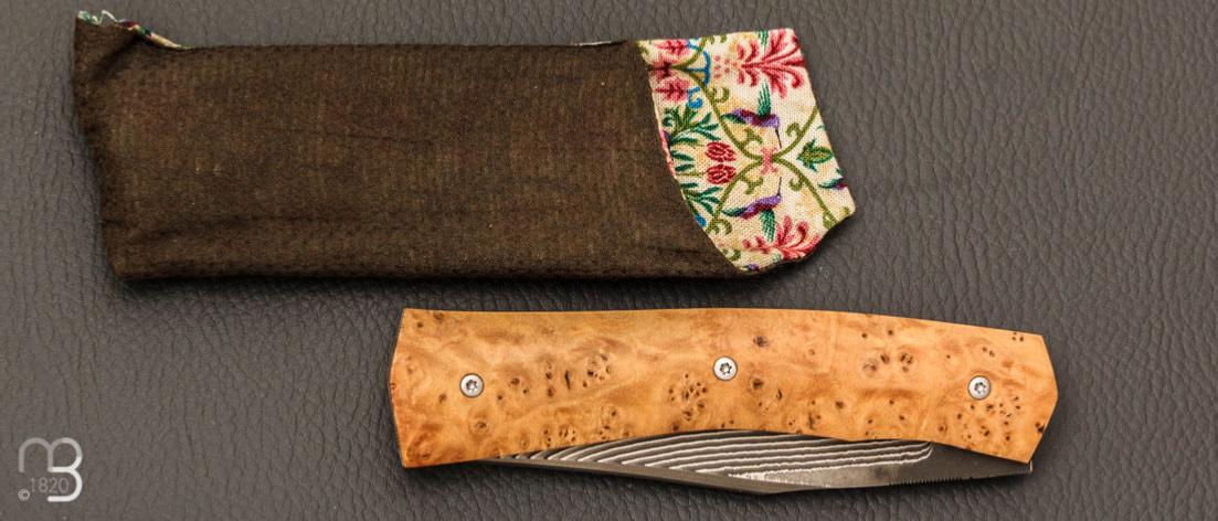 •    Couteau " Oiseleur  " pliant artisanal de Cyril Kalisz - Loupe de frêne et Suminagshi SG2
