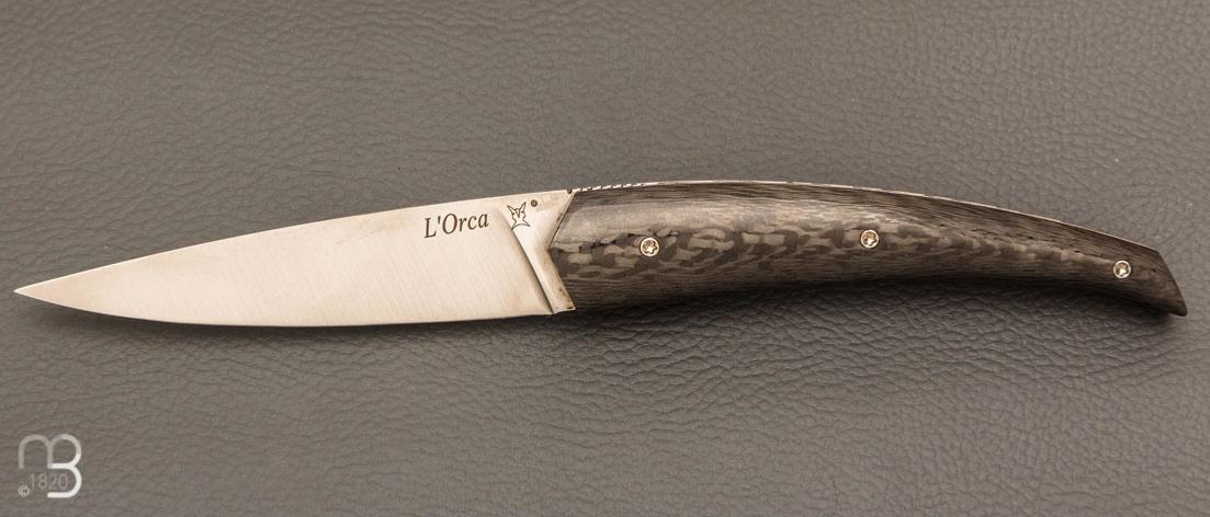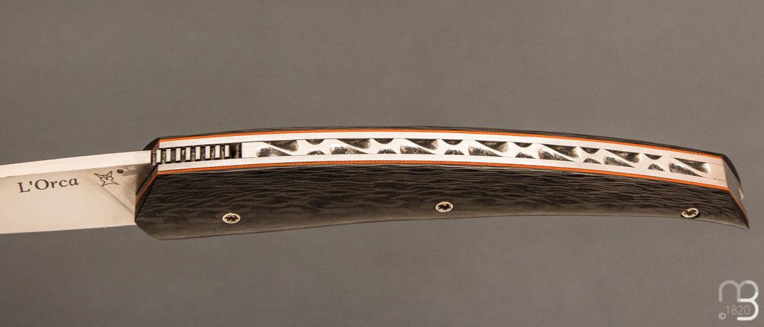 •   Couteau " ORCA " pliant par l'Atelier Les 2 Diables - Fibre de carbone et 14c28n