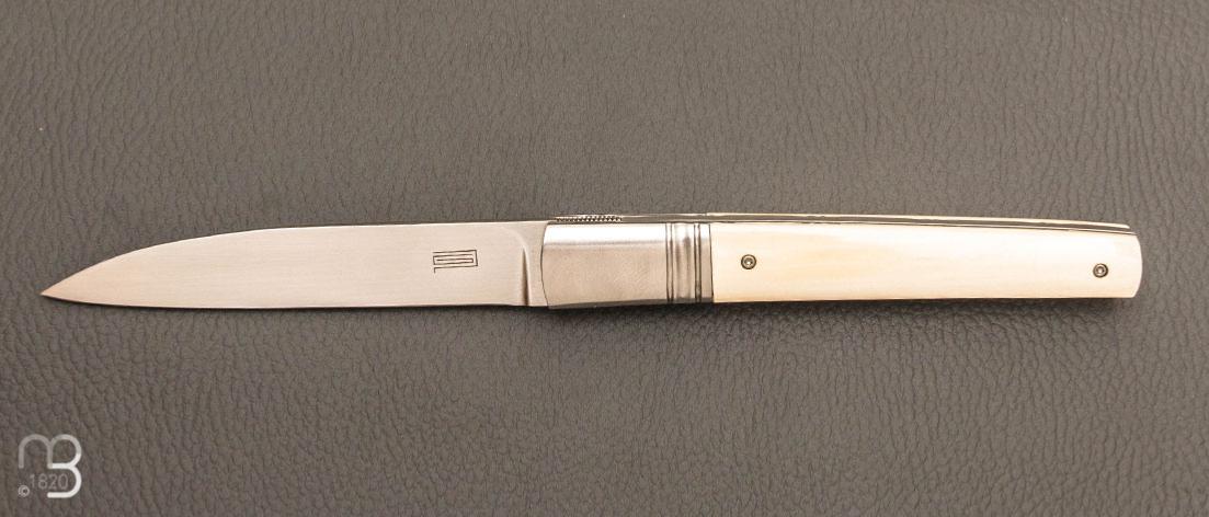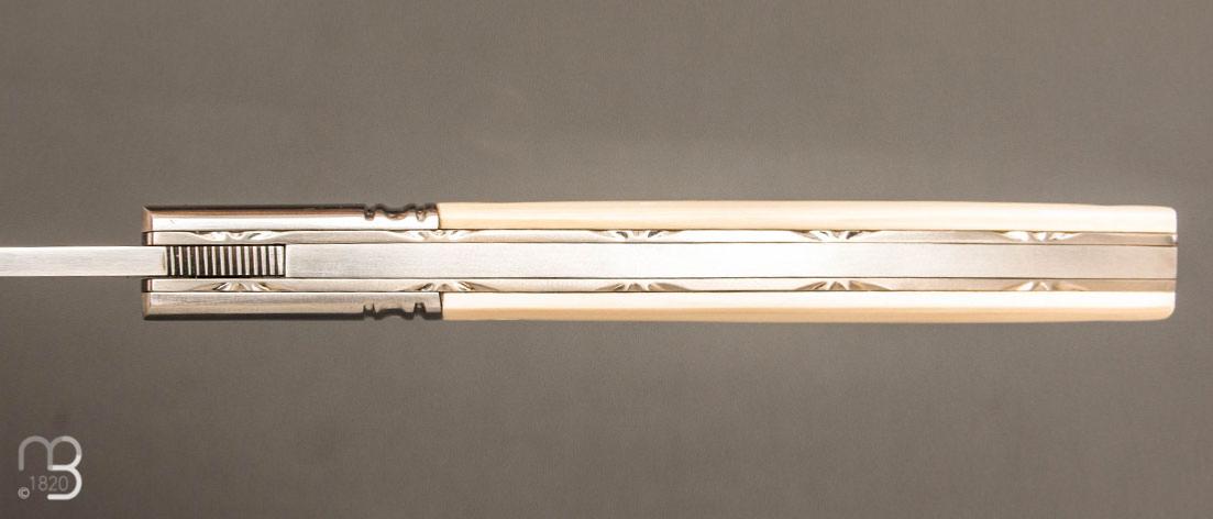•   Couteau " custom " Liner lock de Giuseppe Pala - Ivoire de mammouth et lame en RWL34