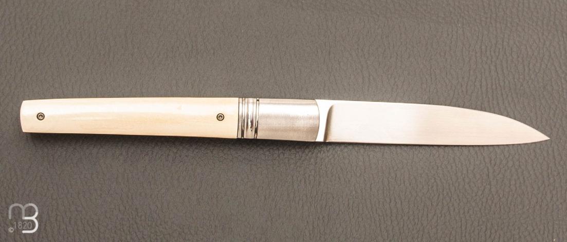 Manche composé de plaquettes en ivoire de mammouth, mitres en acier inoxydable.